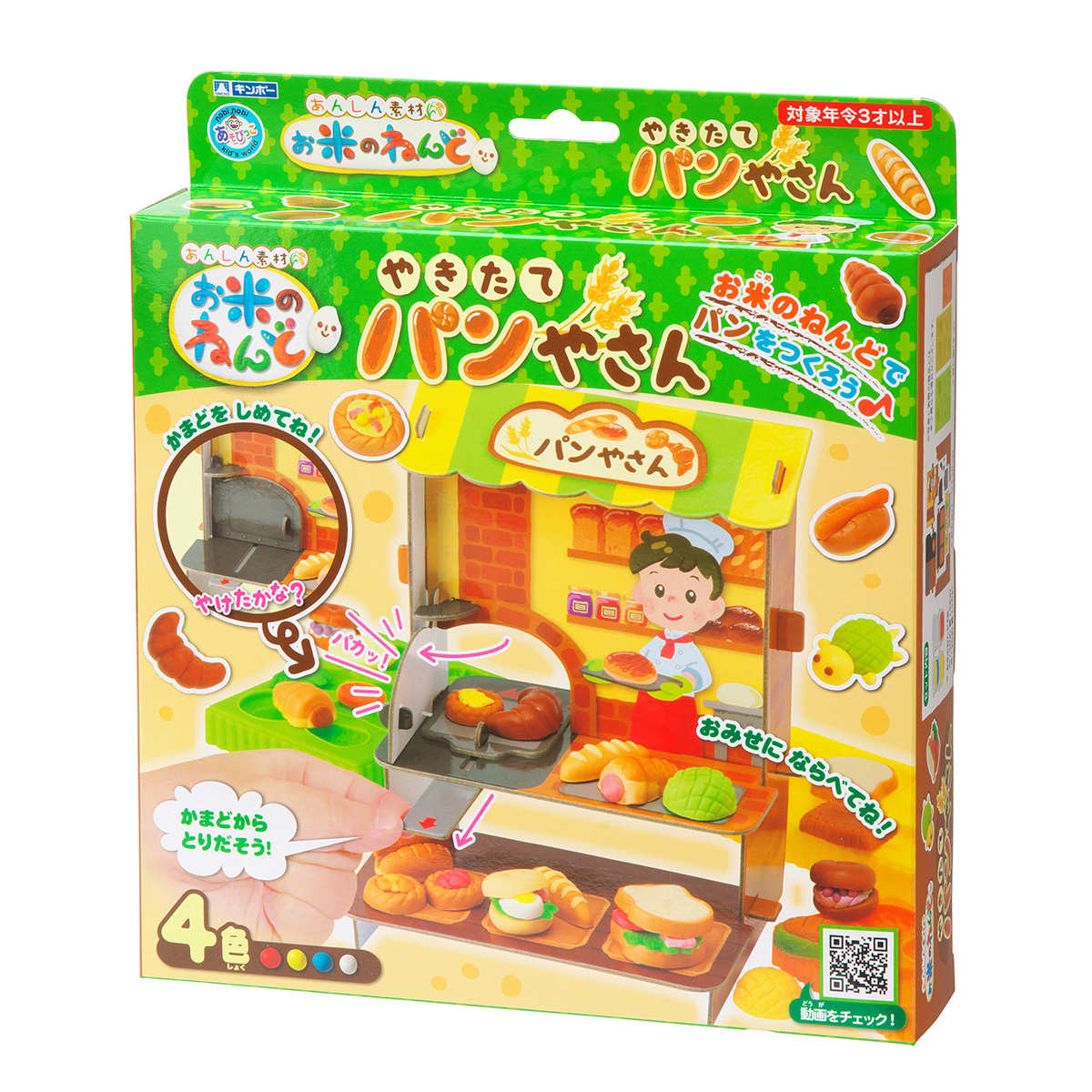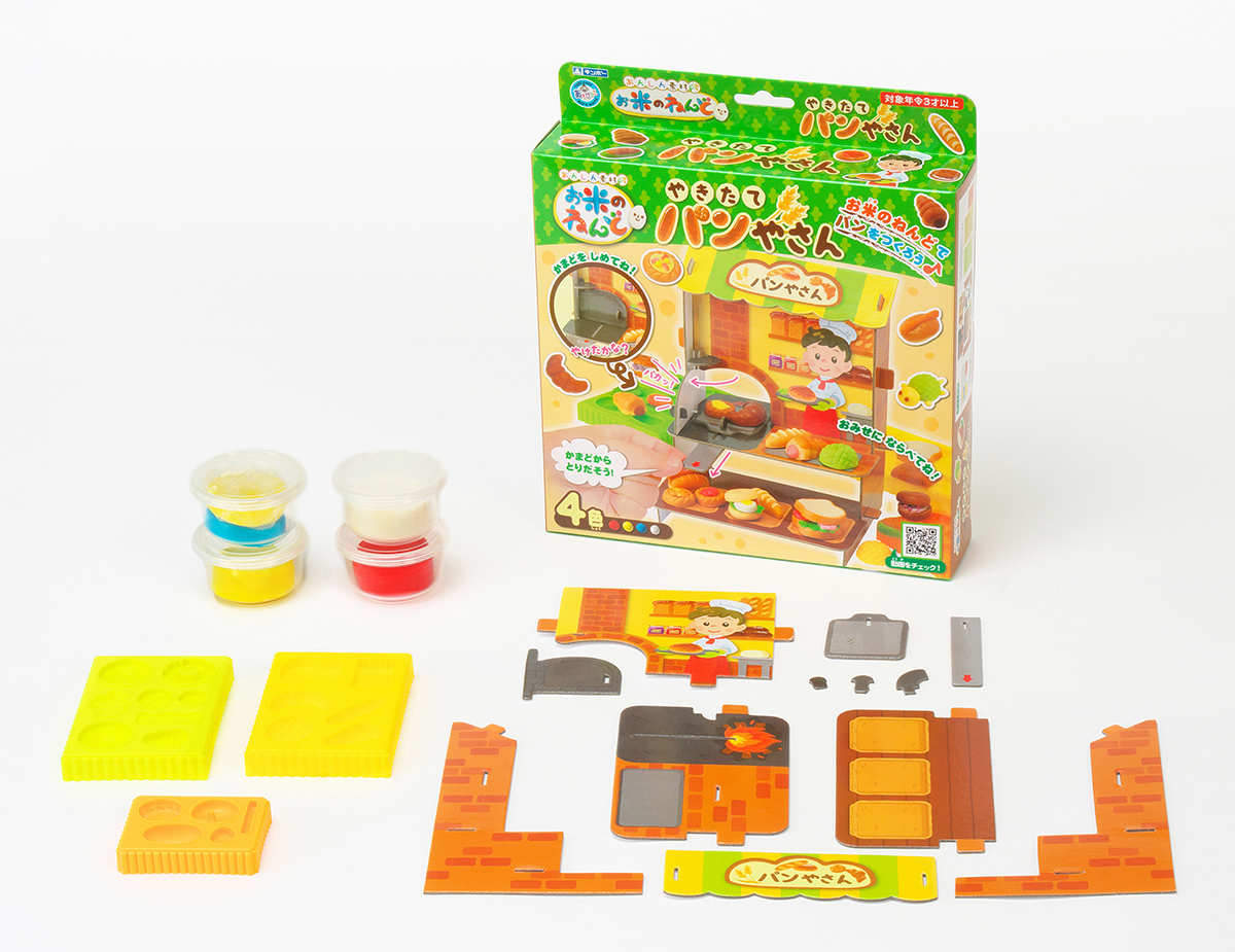 ●お米でつくった安心素材のねんど4色と押し型、お店が入ったセットです。