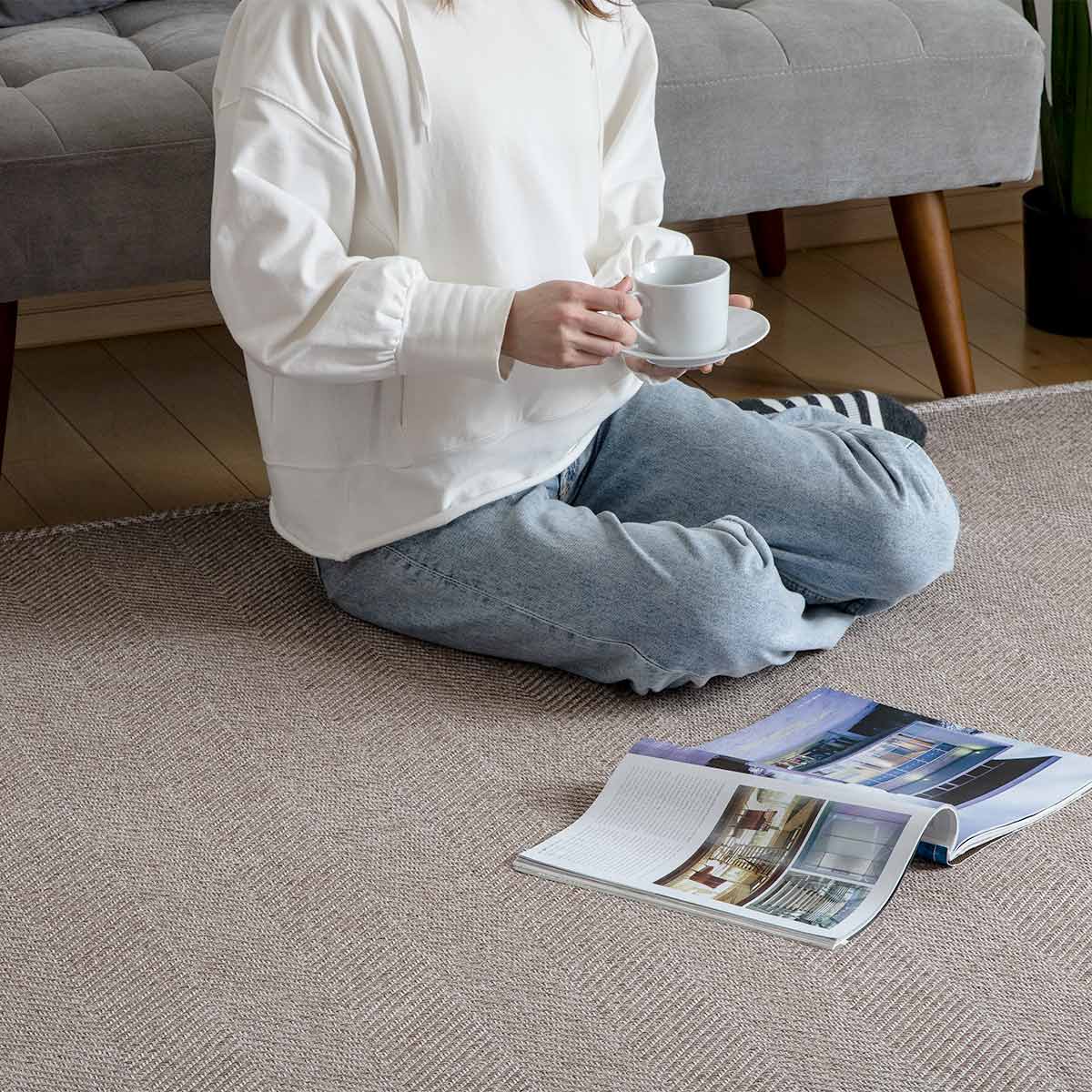 さらっとした手触りとウレタン入りの程良いクッション性で快適に過ごせます。クッション性があるので床への衝撃も和らげてくれます。汚れても手洗いが出来るので、小さなお子様やペットがいるご家庭でも気兼ねなくお使いいただけます。お掃除ロボにも対応しています。