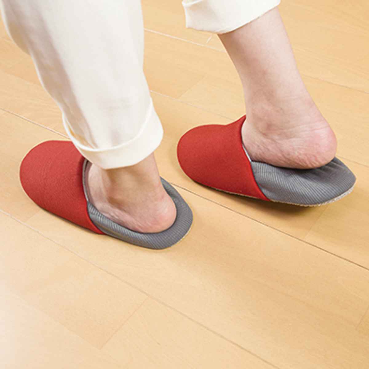 左底面のかかとには滑り止めが付いています。また左右区別のない形状なので、着用時のわずらわしさがありません。