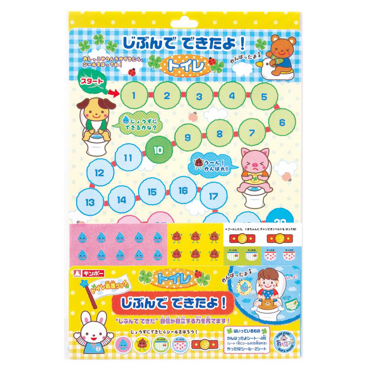 お子さまにとってトイレに行く事はあまり楽しいイメージではありません。生活の中で自分の意志でトイレに行く習慣を身に着けるまでには、けっこう根気のいる作業です。この「じぶんでできたよ!(トイレ)」を使えば、お子さまもトイレに行く事が楽しくなるような環境が作れます。また、おしっことうんちのシールを貼ることでお子さまの体調管理にも役立ちます。お子さまがトイレで上手におしっこやうんちが出来たら、付属のシールを一緒に貼ってあげましょう。
