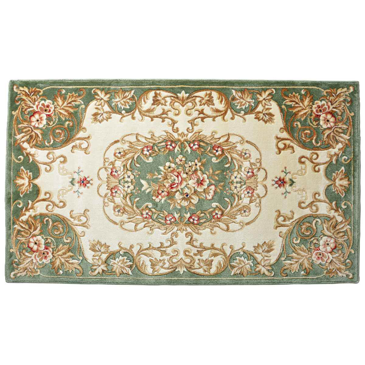 玄関マット 屋内用 60×90cm メダリオン ( マット 玄関 室内 部屋 ラグ インテリア 花柄 エレガント 屋内 おしゃれ 高級感 60cm 90cm 玄関用品 アクセントマット 玄関用マット 重厚感 厚み 1cm カービング加工 ) 【グリーン】