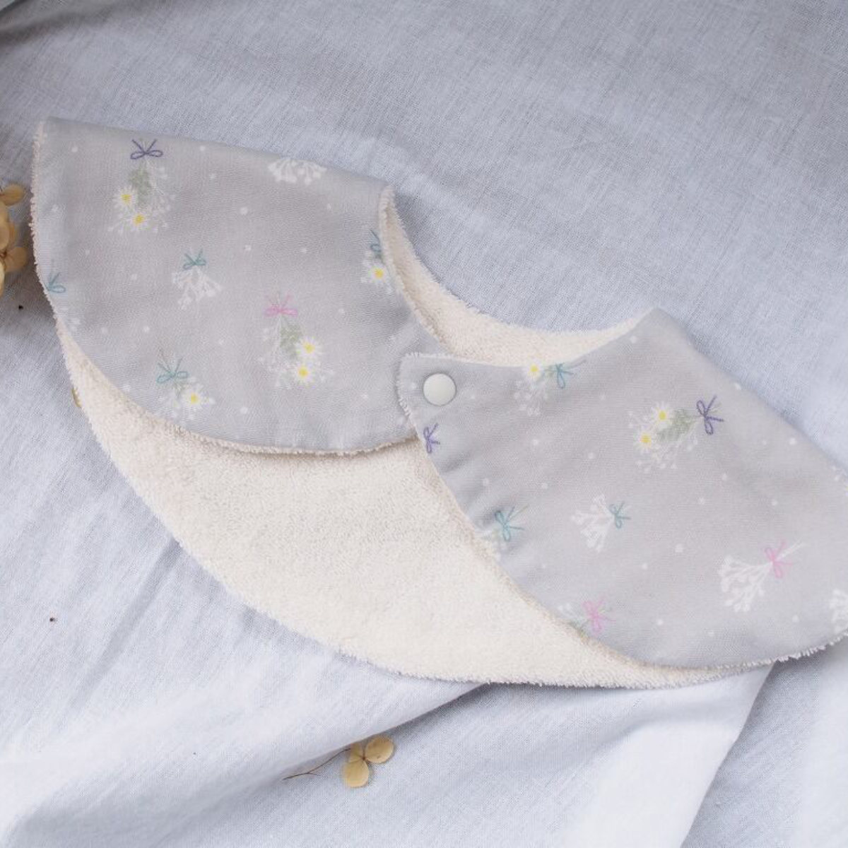 お洋服に合わせやすい丸い形のスタイには、ママの赤ちゃんへの想いが花言葉にちなんで詰め込まれています。赤ちゃんのお肌に優しい柔らかい素材のスタイは、何枚あってもうれしいので、プレゼントにもおすすめです。