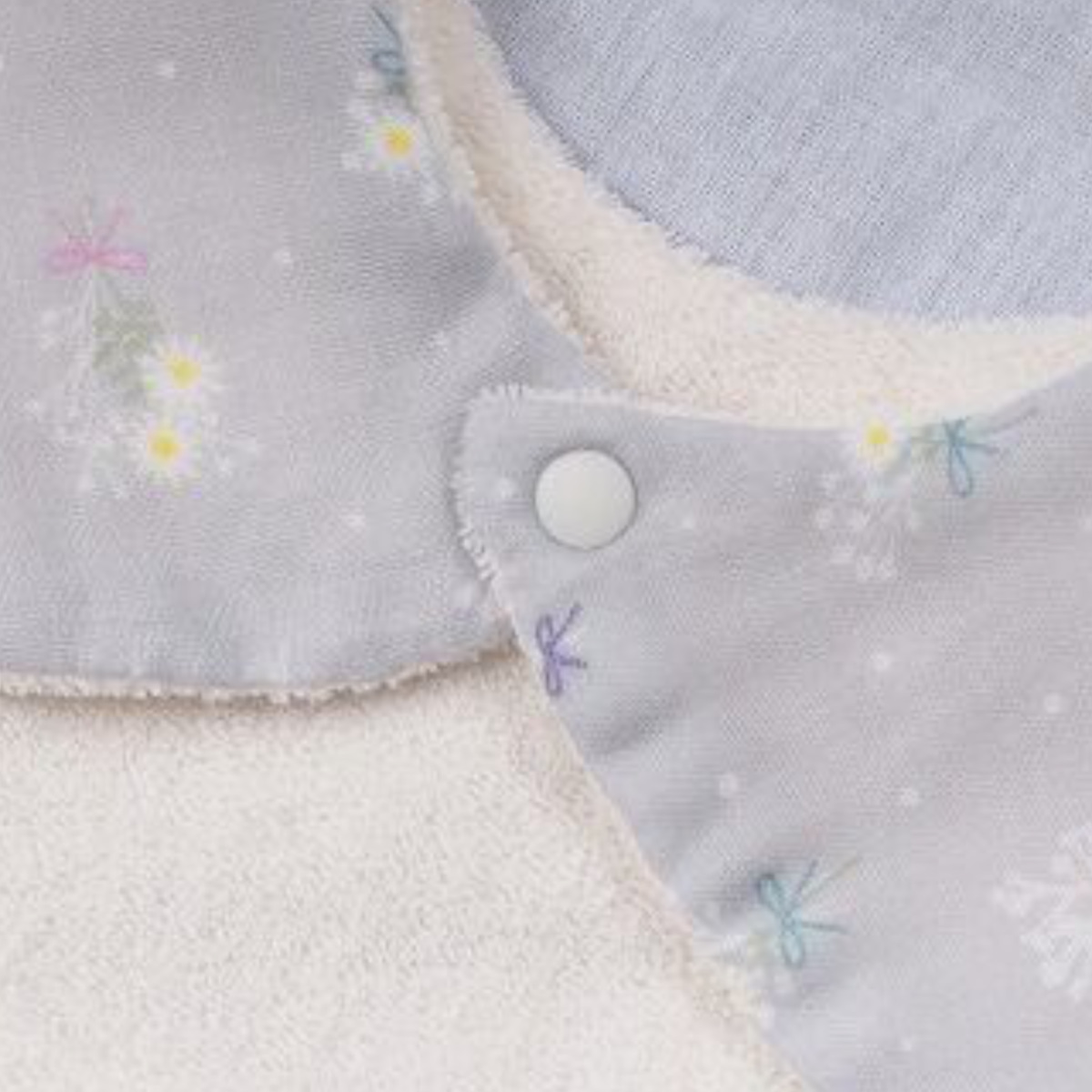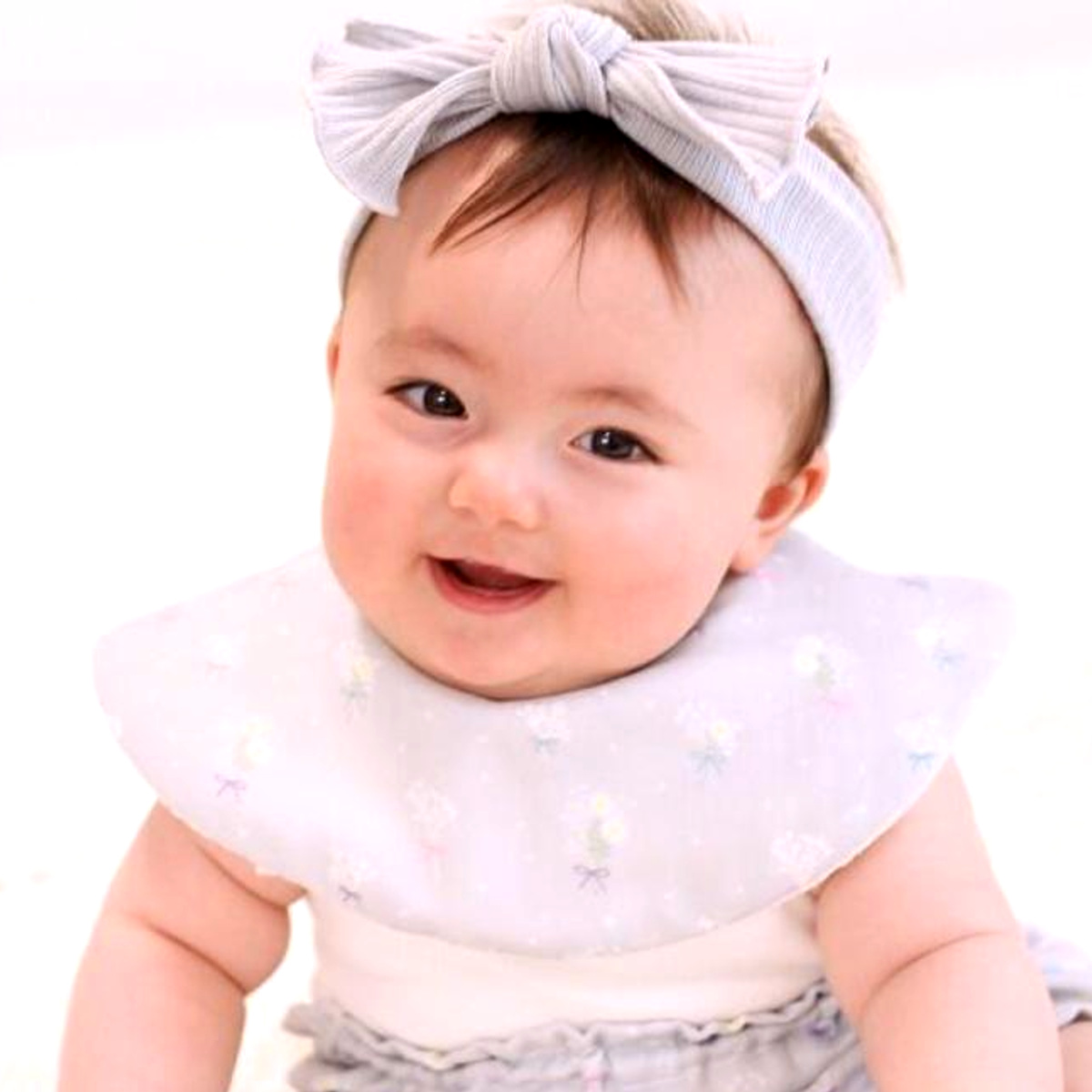 吸水性のいいダブルガーゼ仕上げなので、よだれや食べこぼしもしっかりキャッチします。柔らかいガーゼなので、赤ちゃんのお肌を傷付けません。裏面にも吸水性のよいコットン100%のパイル生地を採用しています。