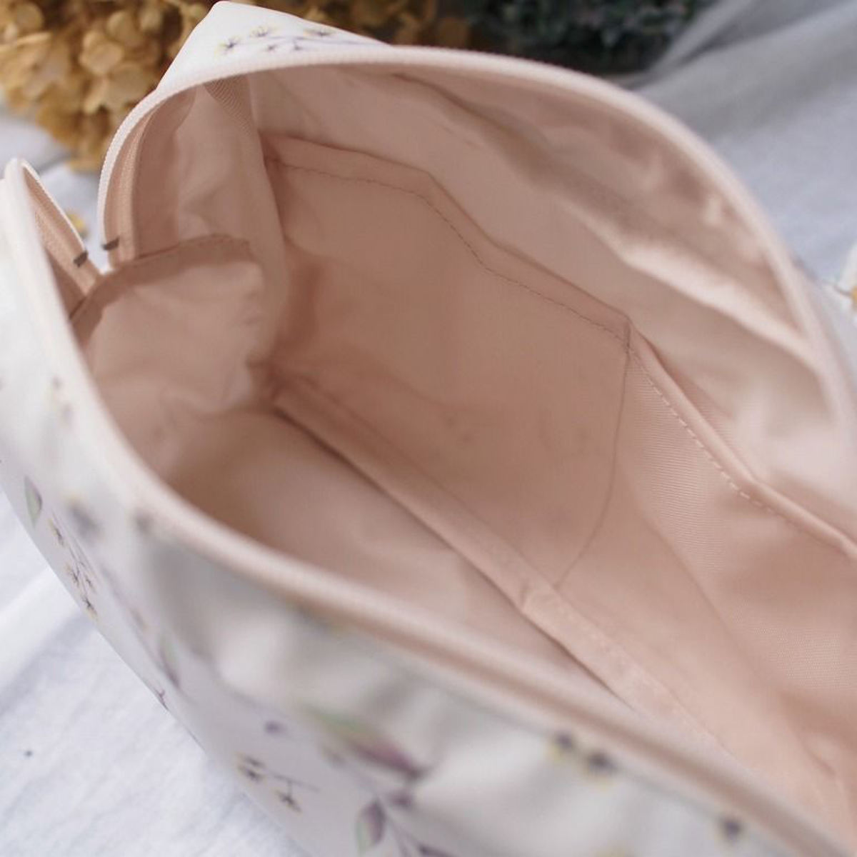 マチが7cmあるので、おむつ4枚、新品のおしりふき1袋、レジ袋が入ります。しっかりと縫製された安心の日本製です。ファスナーは、横に広く大きく開くので、中のものをサッと取り出せます。お子様が成長してからも、お子様の着替えやおもちゃ入れ、メイクポーチなどさまざまなシーンで便利にお使いいただけます。