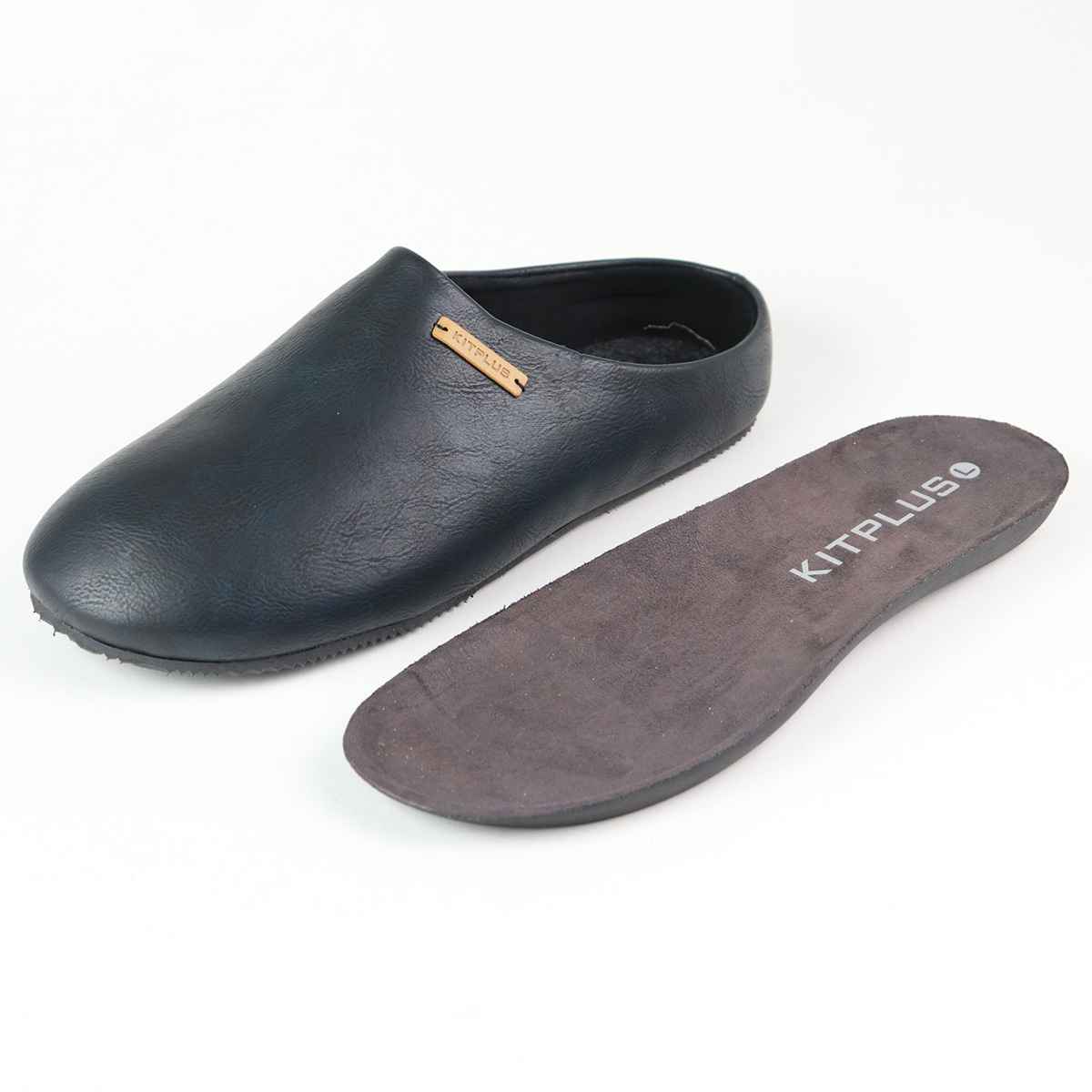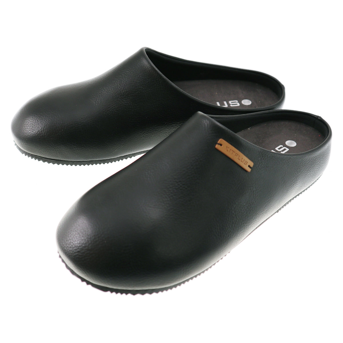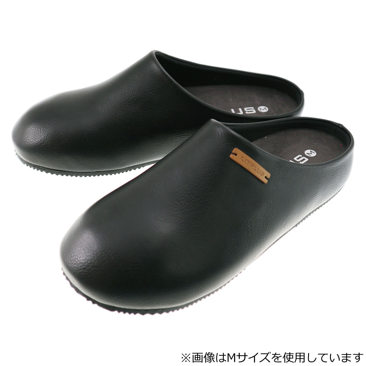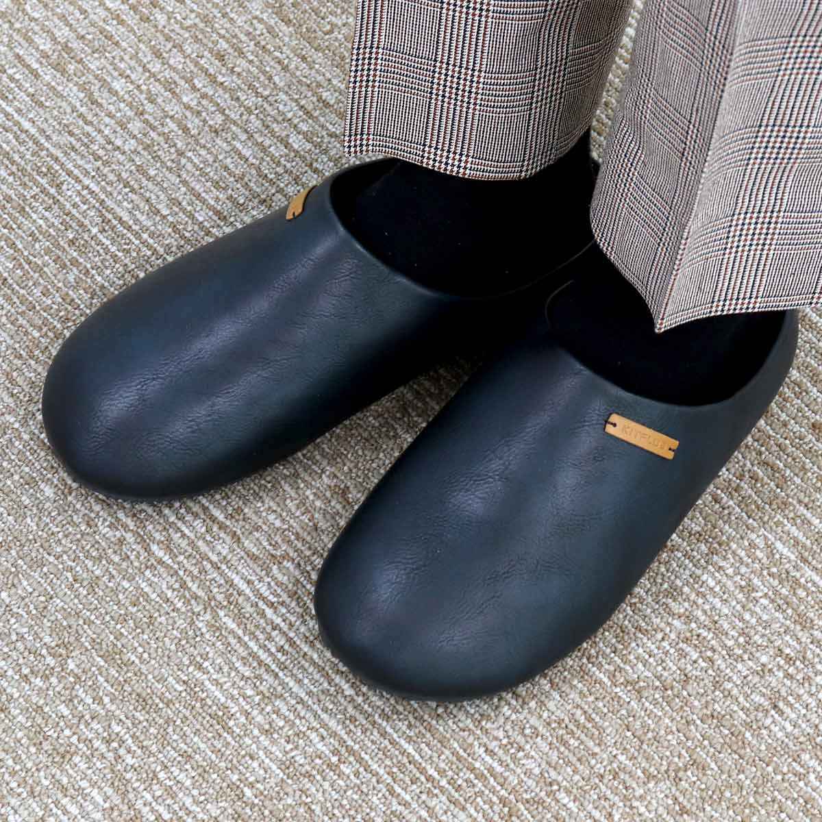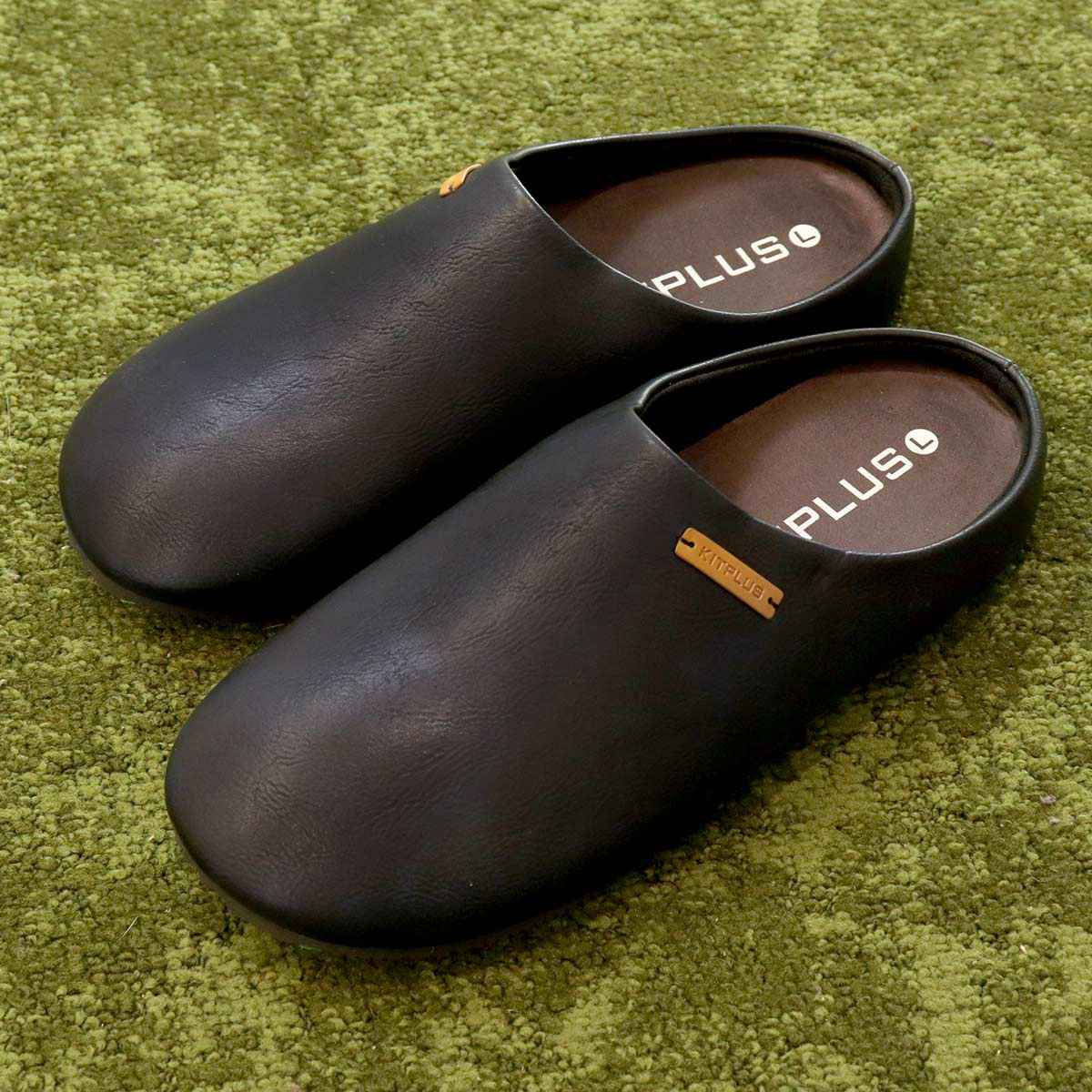 サンダル フェイクレザーサボサンダル L 約27.0~27.5cm KITPLUS ( メンズ つっかけ おしゃれ サボサンダル 27cm 27.5cm 室内 外履き スリッパ ルームシューズ ルームスリッパ サボ 軽い 滑りにくい 歩きやすい ベランダ オフィス )【 ブラック 】