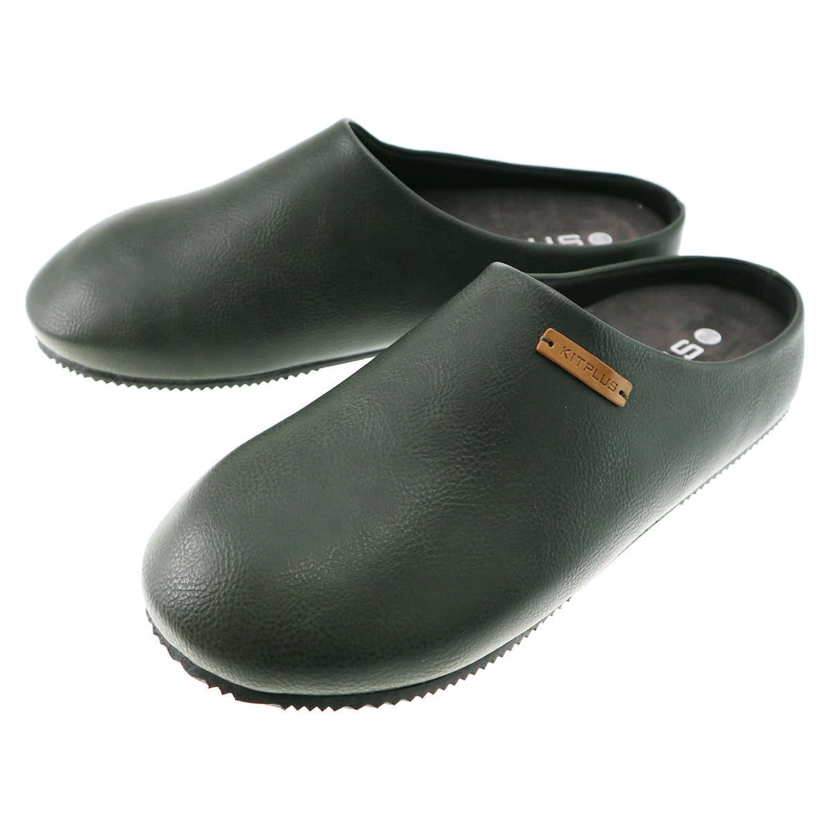 サンダル フェイクレザーサボサンダル L 約27.0~27.5cm KITPLUS ( メンズ つっかけ おしゃれ サボサンダル 27cm 27.5cm 室内 外履き スリッパ ルームシューズ ルームスリッパ サボ 軽い 滑りにくい 歩きやすい ベランダ オフィス )【 ダークグリーン 】