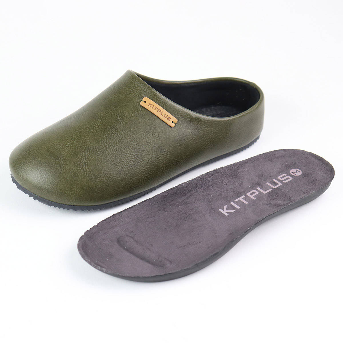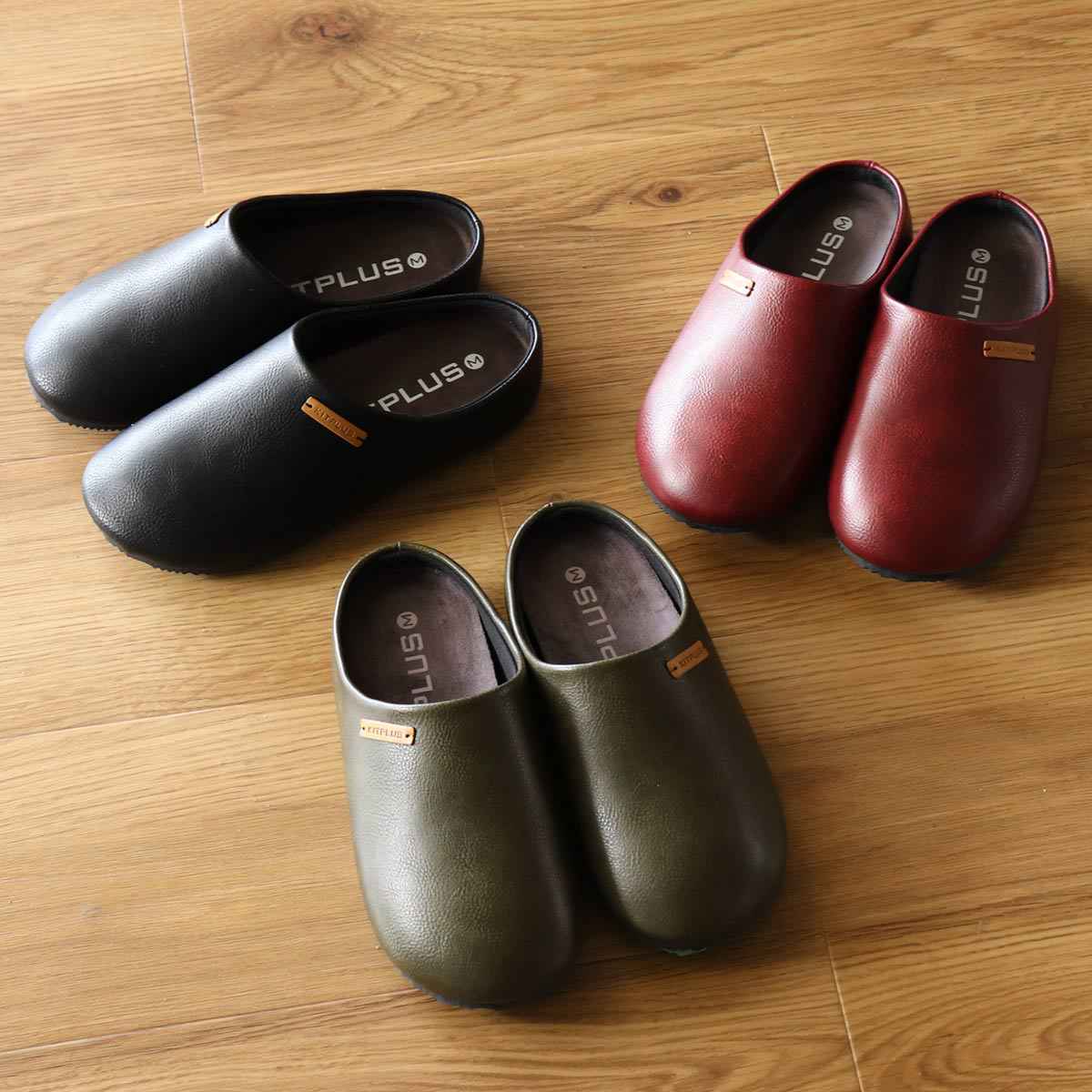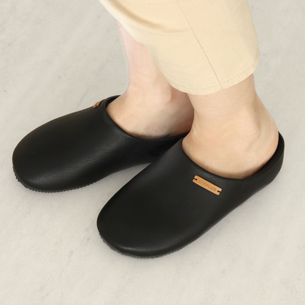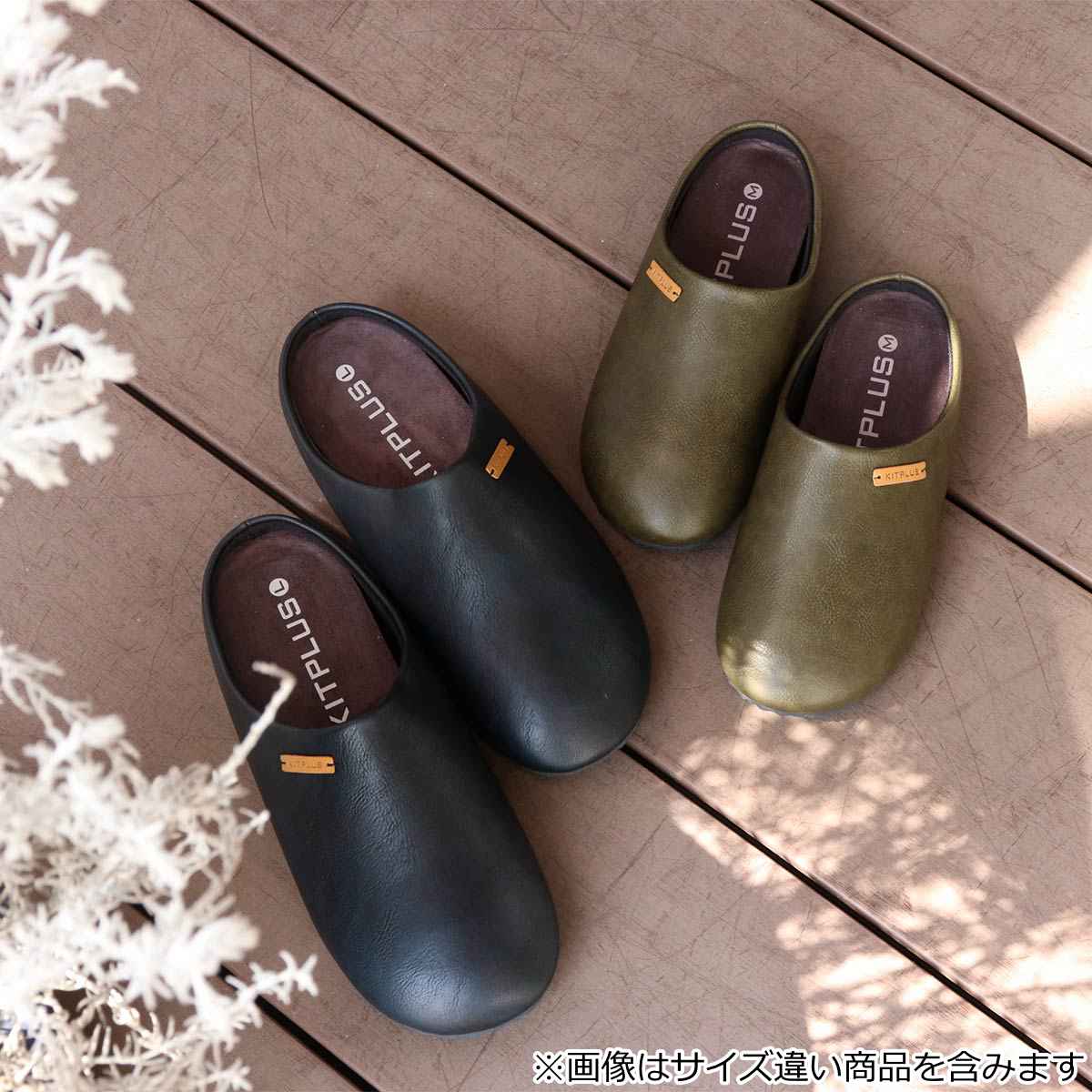 サンダル フェイクレザーサボサンダル M 23.0~23.5cm KITPLUS ( スリッパ レディース 外履き 室内履き ルームシューズ ルームスリッパ 23cm 23.5cm つっかけ おしゃれ 滑りにくい 軽量 室内 外用 サボ 軽い ベランダ )【 ブラック 】