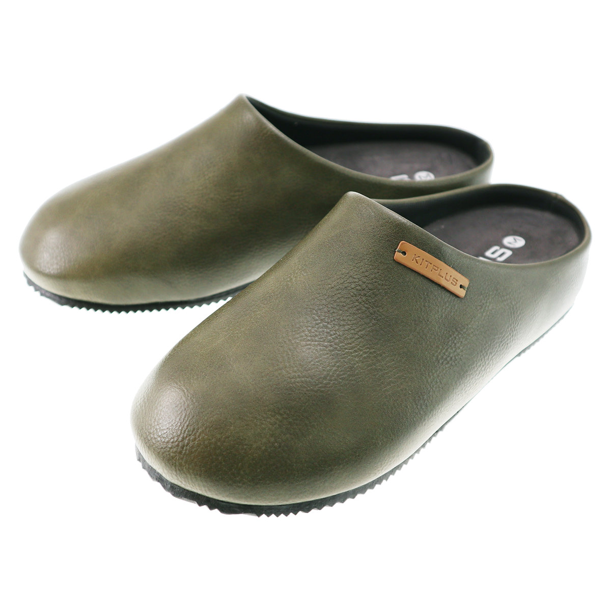 サンダル フェイクレザーサボサンダル M 23.0~23.5cm KITPLUS ( スリッパ レディース 外履き 室内履き ルームシューズ ルームスリッパ 23cm 23.5cm つっかけ おしゃれ 滑りにくい 軽量 室内 外用 サボ 軽い ベランダ )【 オリーブ 】