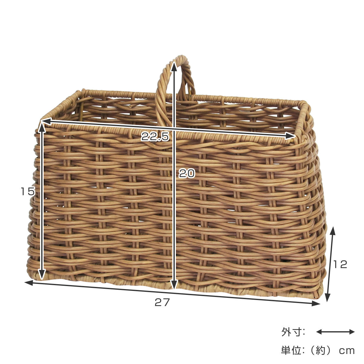 Towc トーク フェイクラタンバスケット ワンハンドル 台形 ( バスケット かご カゴ ラタン風 水洗い 幅22.5×奥行12×高さ15cm 収納 持ち手 小物収納 小物入れ 籐かご風 おしゃれ 角型 キッチン リビング 持ち運び )