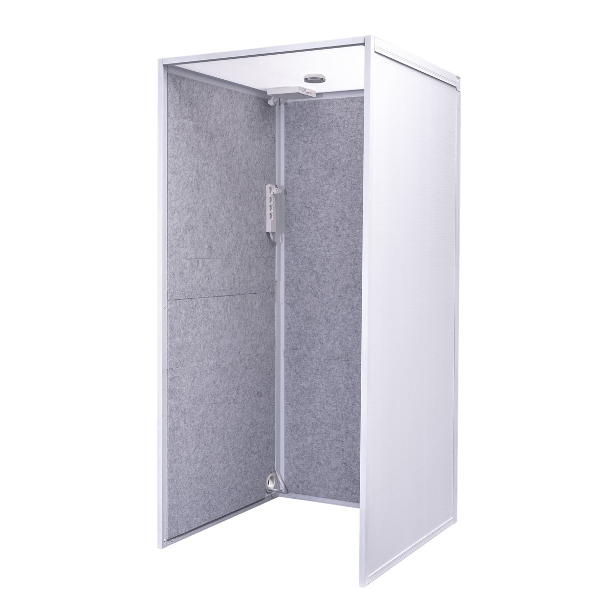 吸音ブース スタンドタイプ REMUTE ( 間仕切り 衝立 パーテーション 吸音 ボックス オフィス リモートワーク ブース テレワーク Web会議 個室 電話 防音 雑音 騒音 軽減 電源タップ 換気 ファン 火災報知器 組立て )【 ホワイト 】
