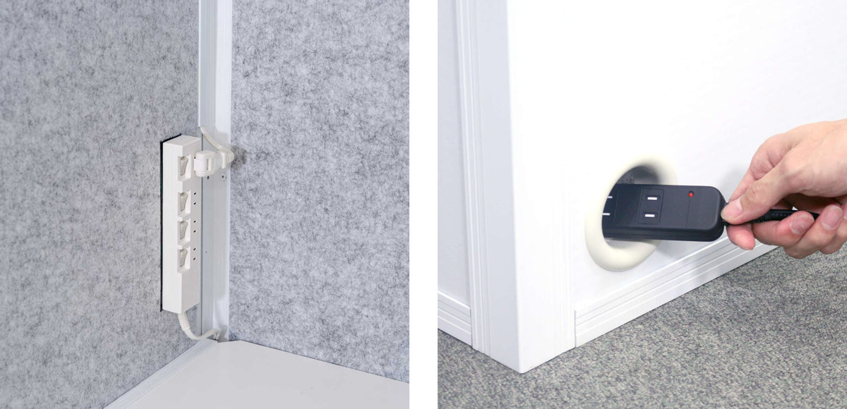 | 材質 | 吸音ボード:PP・PE フレーム:アルミニウム 換気ファン:PP・ABS・スチール 火災報知器:ABS 配線口:ナイロン ネジ・換気ファンダクト:スチール テーブル:メラミン化粧板 |