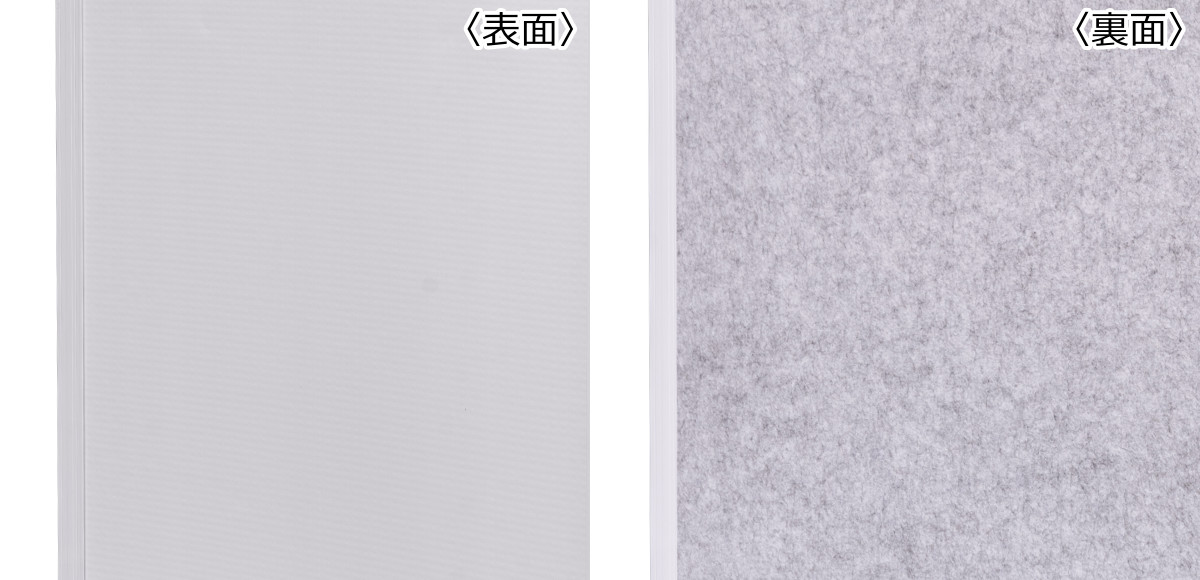 表面はポリプロピレン、裏面はポリエステル(フエルト素材)で、アルコール噴霧が可能な素材を使用しているので、除菌ができて安心です。