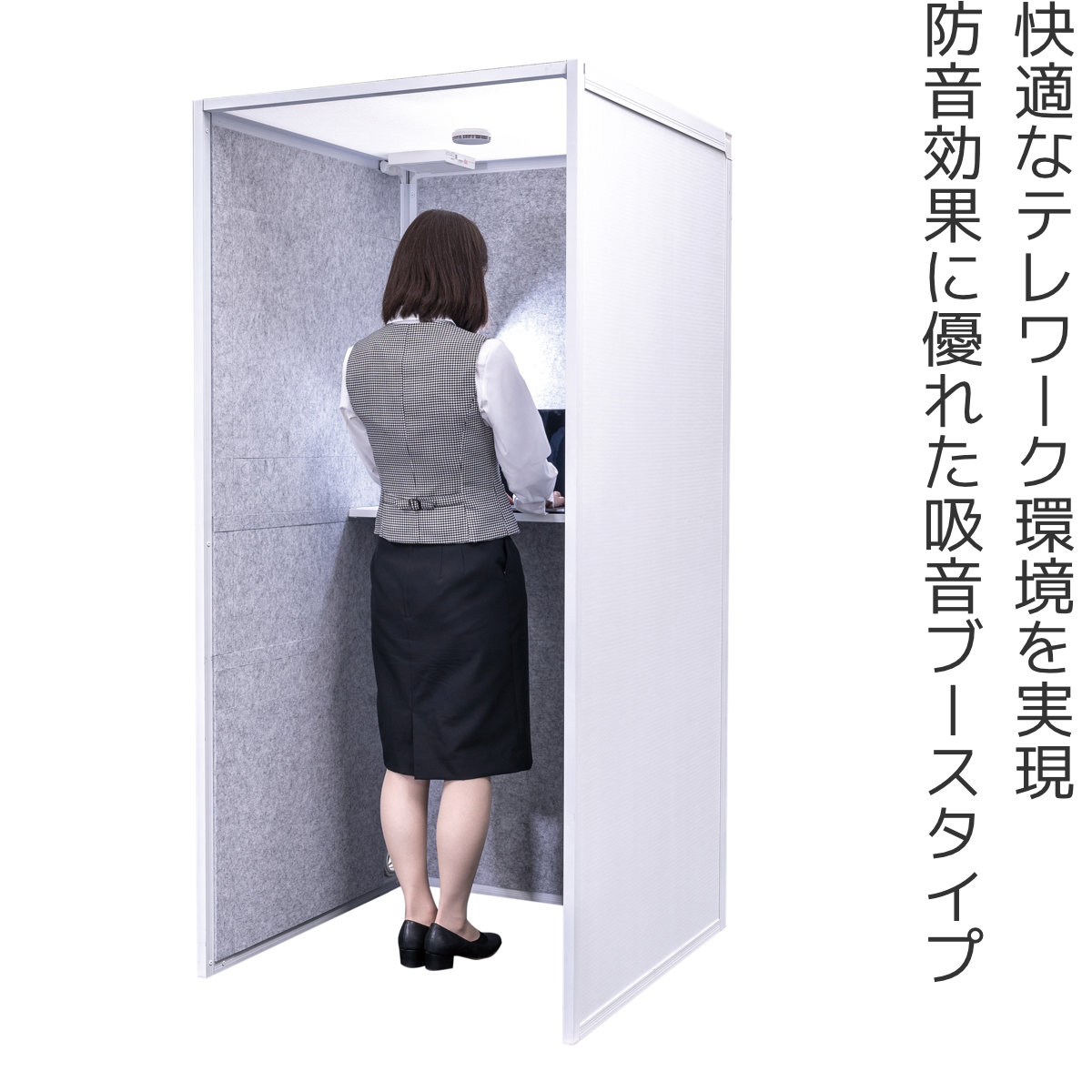 吸音ブース スタンドタイプ デスク付き REMUTE ( 間仕切り 衝立 パーテーション 吸音 ボックス オフィス リモートワーク ブース 机 テレワーク Web会議 個室 電話 防音 雑音 騒音 軽減 電源タップ 換気 ファン 火災報知器 )【 ホワイト 】