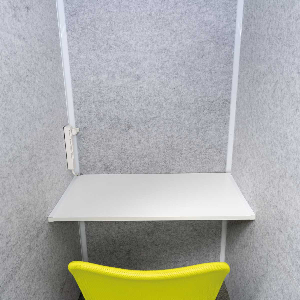 吸音ブースFTは、テーブル・電源タップ・換気ファン・火災報知器が付いています。お手持ちの椅子を入れるとパソコン作業ができる1人用の個室に早変わりします。周りの雑音が気にならないので、テレワーク用個室として快適にご使用いただけます。