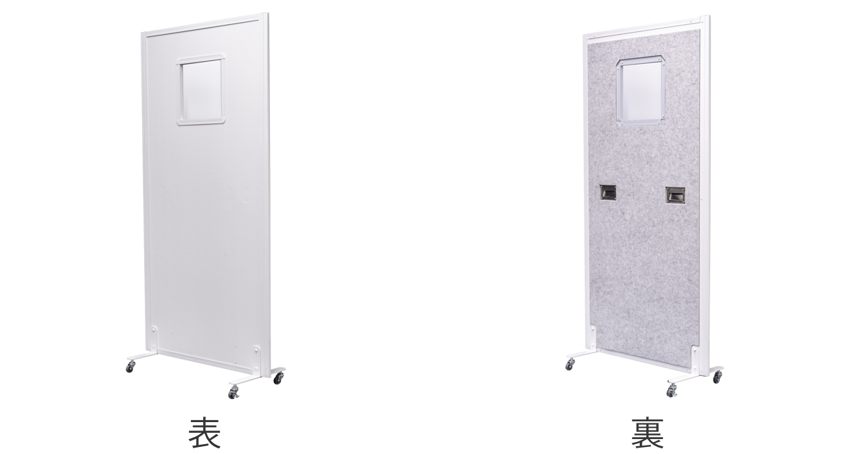 | 材質 | 吸音ボード:PP・PE フレーム:アルミニウム 脚部・キャスター:スチール・エラストマー ネジ:スチール 窓:PVC 持ち手:ステンレス鋼(裏面に2箇所) |