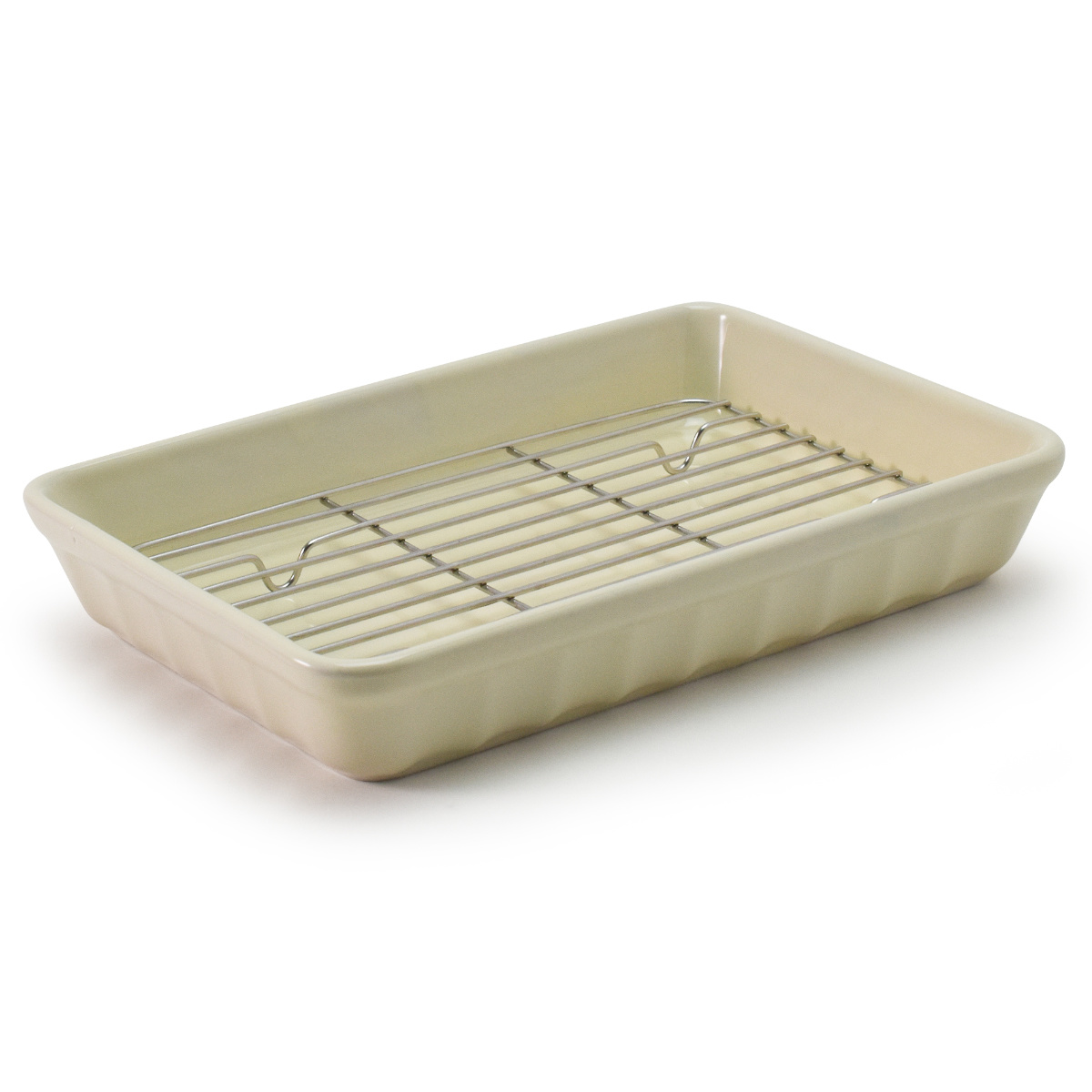 耐熱皿 角 23cm オーブンベーカー 網付き 磁器 美濃焼 ( 食洗機対応 電子レンジ対応 オーブン対応 耐熱食器 角形 四角 グラタン ドリア オーブン料理 スイーツ 揚げ物 油きり付き )【 クリーム 】