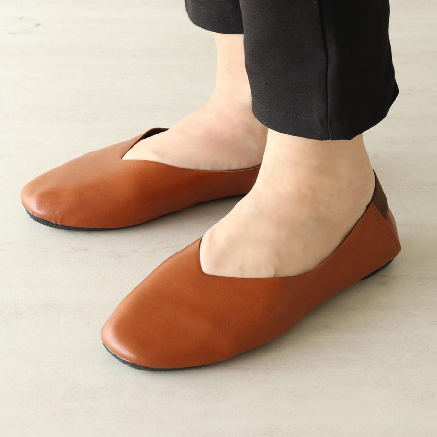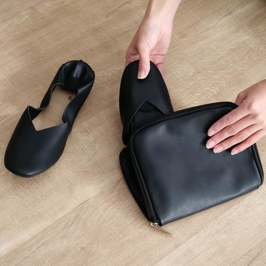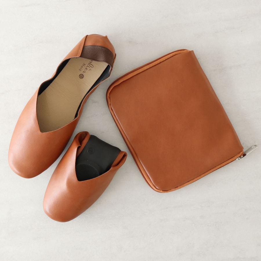 携帯スリッパ レ プリエ ノイエ S・M・L 22.0~25.0cm ( スリッパ 折りたたみ ポーチ付き 携帯 持ち運び コンパクト 収納 室内履き レディース トートバッグ 折りたたみスリッパ レザー調 バブーシュ 滑りにくい 学校行事 ) 【キャメルブラウン S】