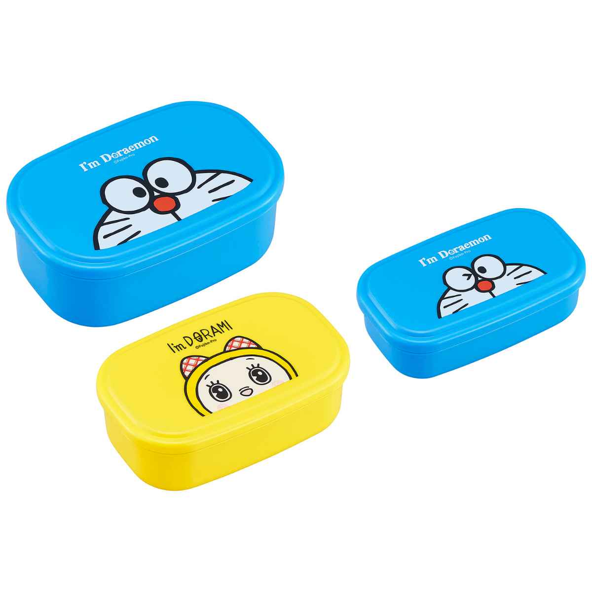 ●ドラえもんの容量、デザインが異なるシール容器3点セットです。