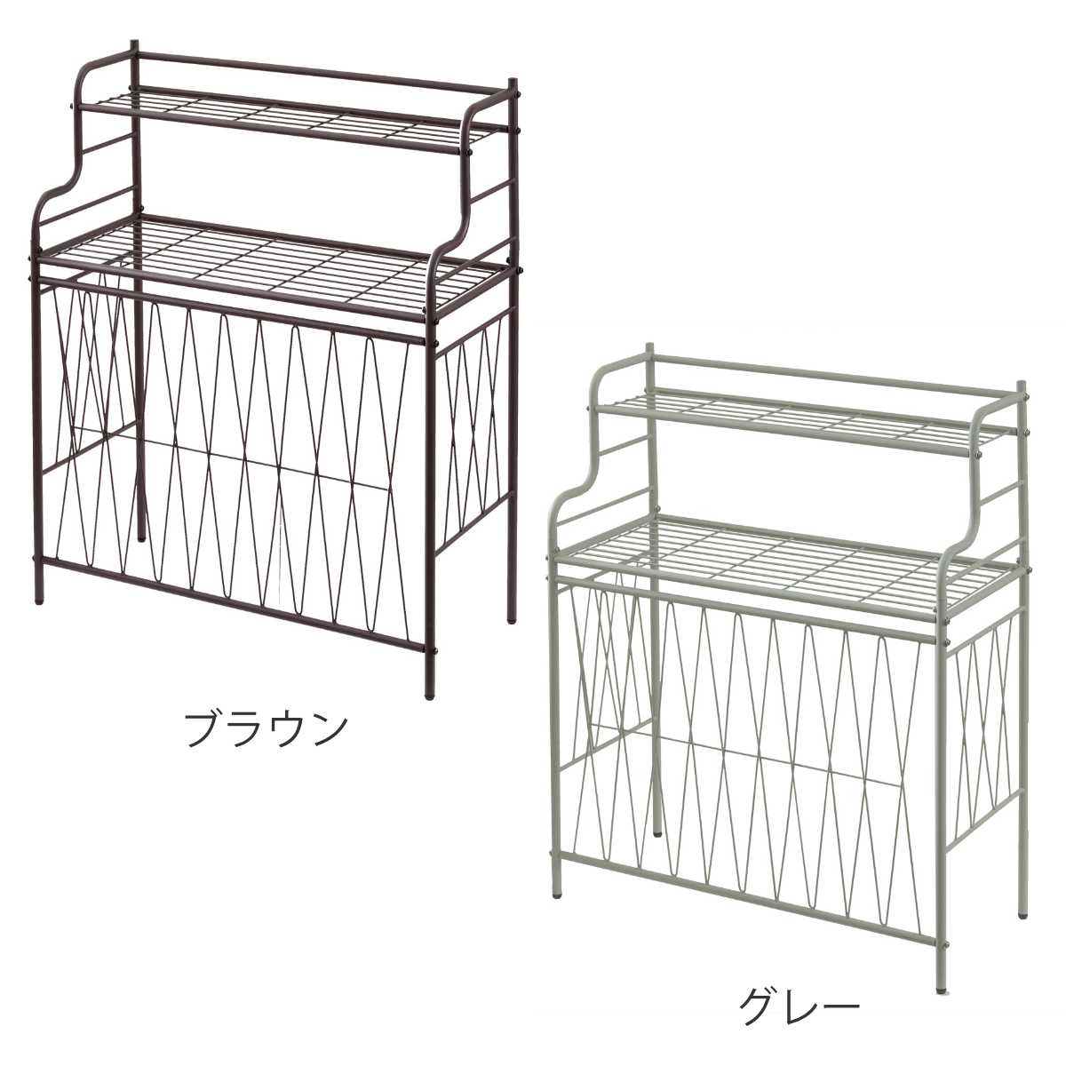棚が2段あるので、育てたグリーンや花を置き、ガーデニング空間をより魅力的に見せられるフラワーラックとしても使えます。上下段で別々の雰囲気のディスプレイを楽しむこともでき、置きやすく、取り出しやすい設計もうれしいポイントです。