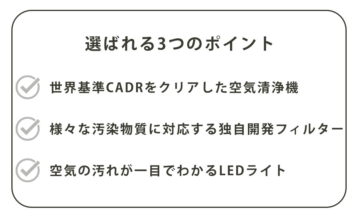 空気の状態は気体センサーによって測定され、LEDライトのインジケーターで、空気の汚れが一目でわかります。