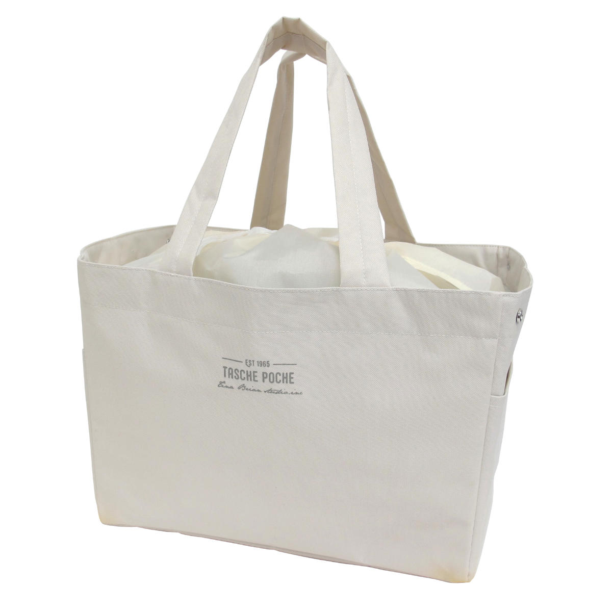 エコバッグ レジカゴ用バッグ 無地 折りたたみ マチ広 ポケット付き Poche ( ポッシェ ショッピングレジバッグ 大容量 保冷 巾着式 レジカゴ型 マイバッグ エコバック 買い物バッグ レジカゴ 肩掛け コンパクト レジバッグ )【 アイボリー 】