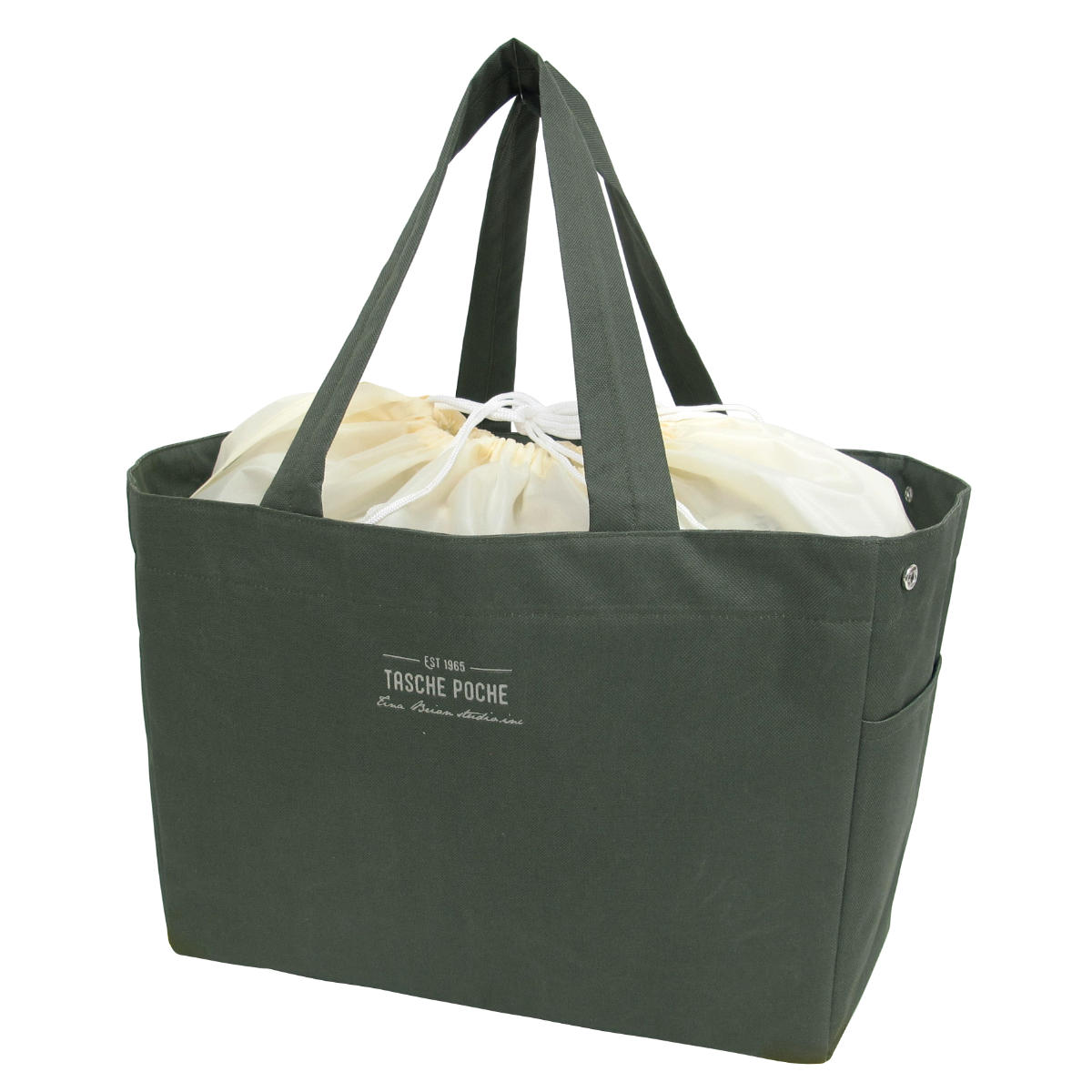 エコバッグ レジカゴ用バッグ 無地 折りたたみ マチ広 ポケット付き Poche ( ポッシェ ショッピングレジバッグ 大容量 保冷 巾着式 レジカゴ型 マイバッグ エコバック 買い物バッグ レジカゴ 肩掛け コンパクト レジバッグ )【 カーキ 】