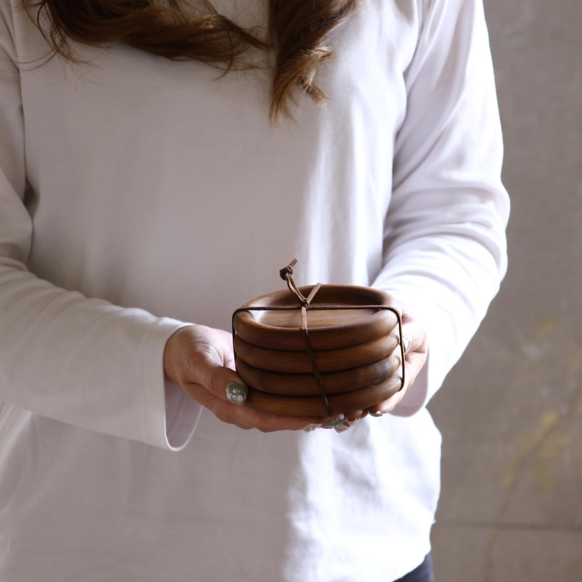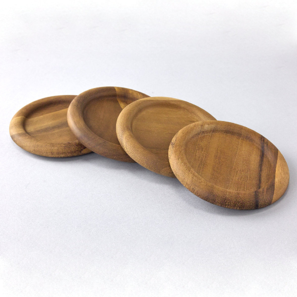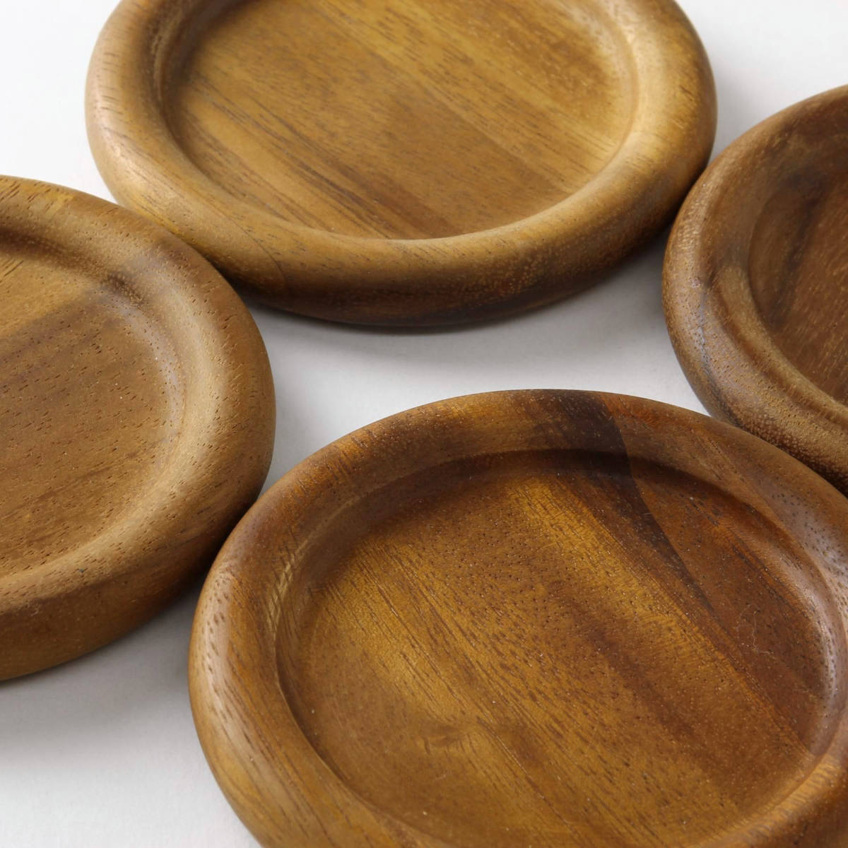 表情豊かな木の温もりを楽しめるラウンド型のアカシアコースターです。ふちのぽってりとした丸みが可愛く、ナチュラルで優しい雰囲気が魅力です。急な来客にも嬉しい4枚入りです。