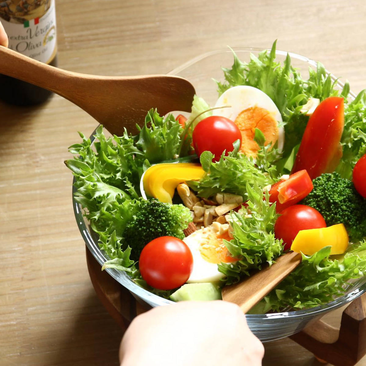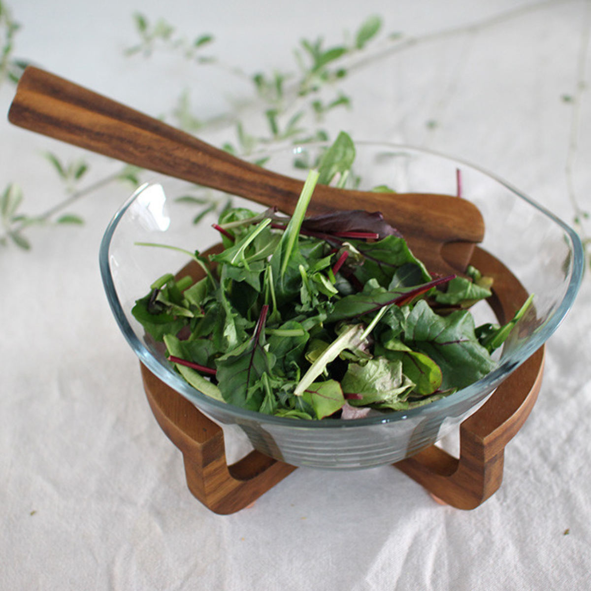 ボウル&サービングセット ボウル ヘラ 台 BONO BONO アカシア 木製 ( サラダボウル サラダサーバー 台座 木 木目 ガラスボウル サラダ そうめん フルーツポンチ 滑り止め付き オイル仕上げ おしゃれ )