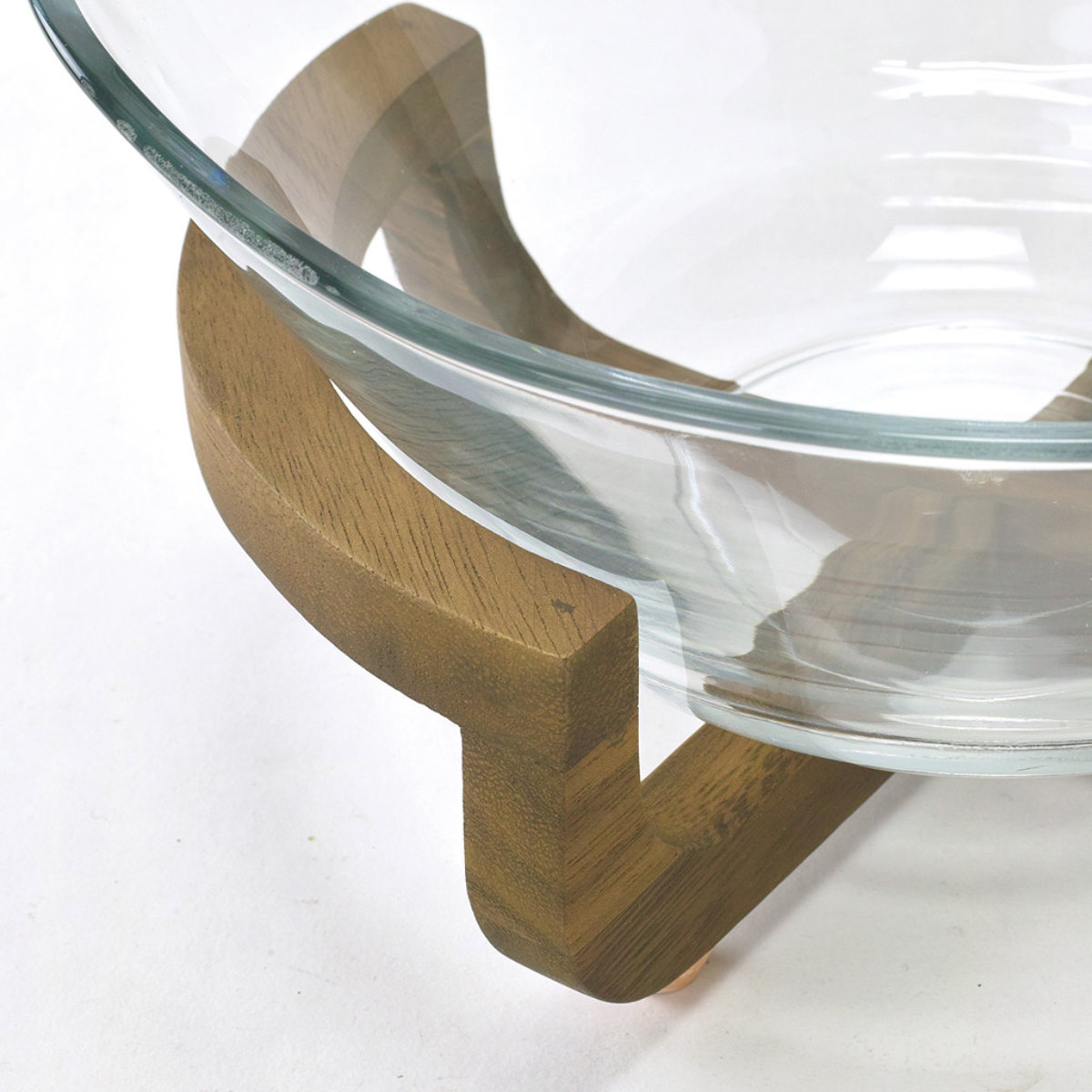 透明感のあるガラスとアカシアの組み合わせがお洒落なボウルです。皆で取り分けるサラダにはもちろん、素麺やフルーツポンチなどを盛り付けても涼やかです。おもてなしにはもちろん、毎日の食卓に取り入れれば特別感のある食事を楽しめます。