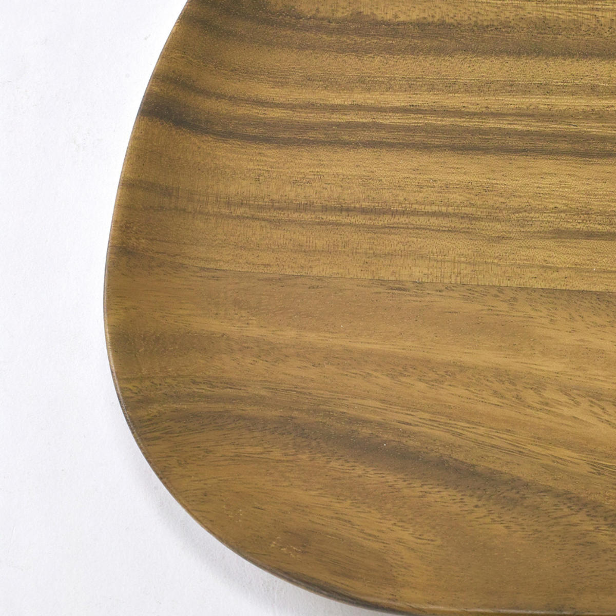 丸みを帯びたフォルムで、木の表面は滑らかな手触りです。オイル仕上げなので、自然そのままの木の風合いを楽しめます。深みのある茶色で高級感があり、どんなお料理にも合います。使用後はキッチンに飾っておくだけでも絵になる美しさです。