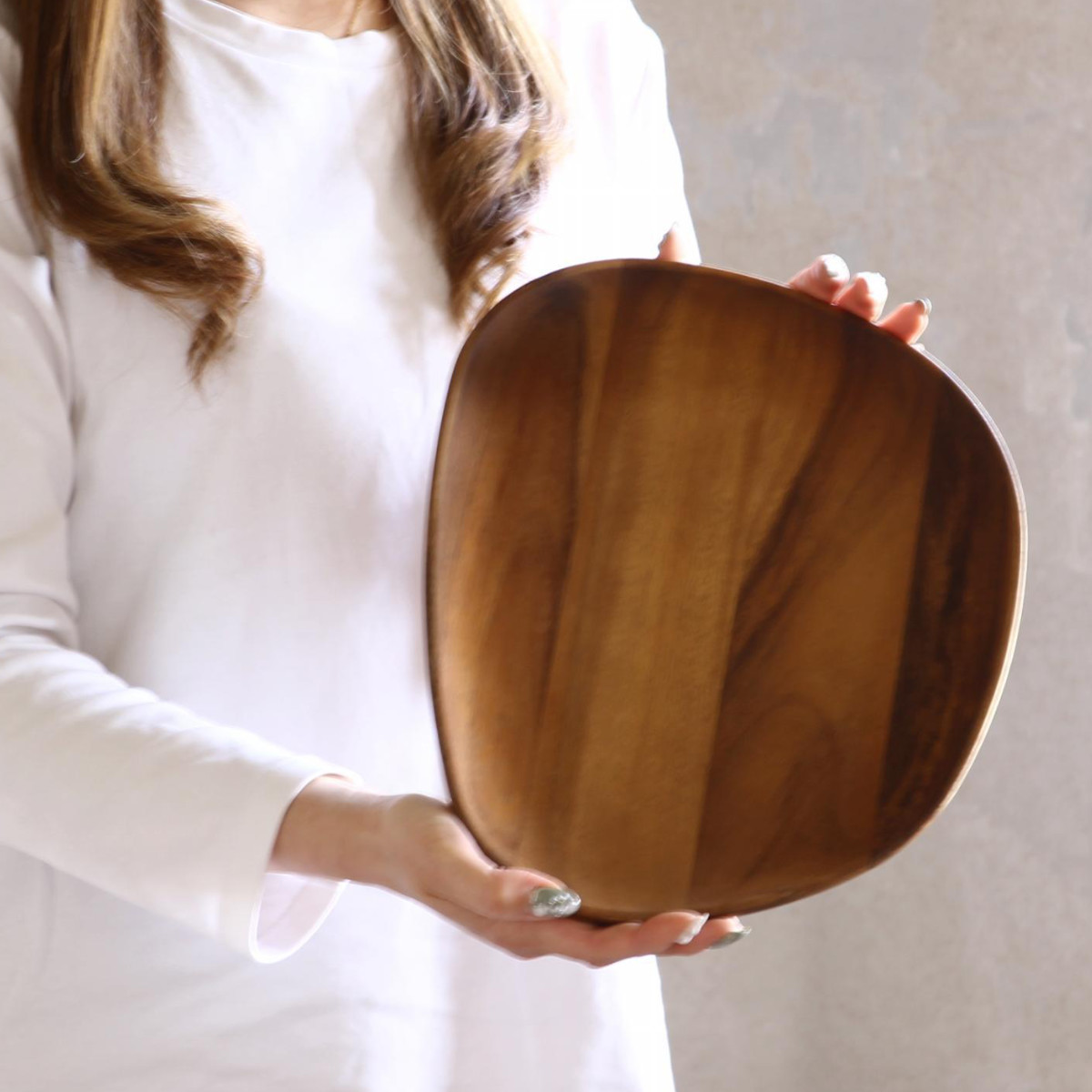 表情豊かな木の温もりを楽しめるアカシアプレートです。皆で取り分けるメイン料理の盛り付けや、一人分のモーニングプレートやワンプレートランチにもぴったりな大きさです。