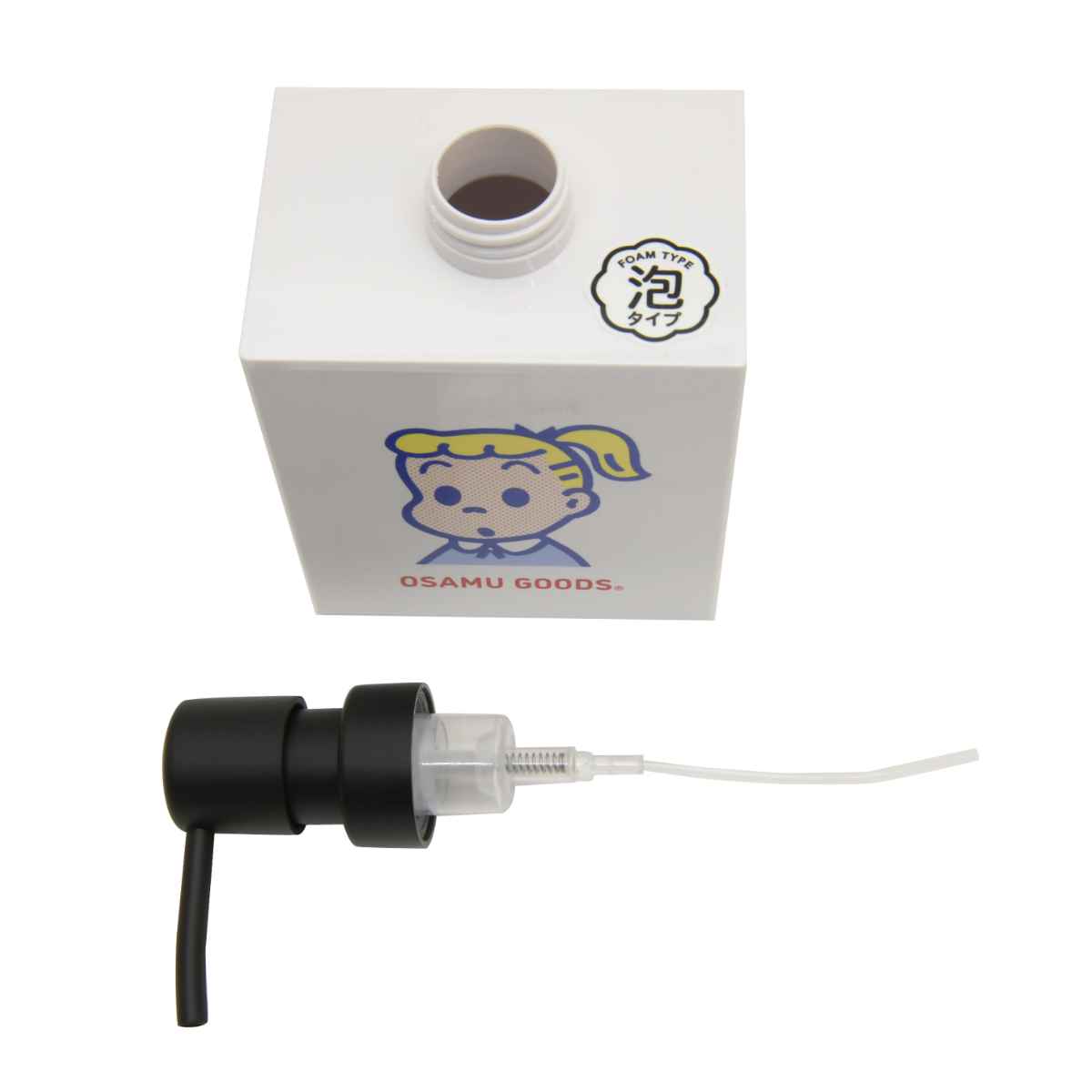 ディスペンサーの正面は、オサムグッズの可愛いデザイン入りです。