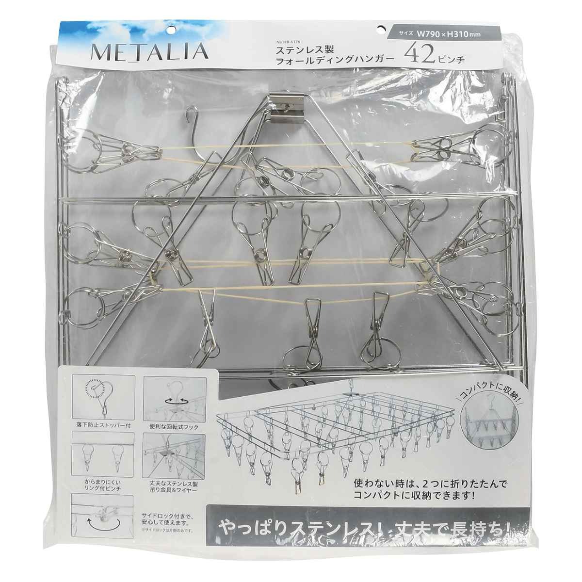 ハンガー ステンレス メタリア フォールディングハンガー 42ピンチ ( 洗濯 ハンガー ピンチハンガー 洗濯ピンチ 折り畳み 折りたたみ ピンチ コンパクト 洗濯ばさみ 洗濯バサミ 42 ステンレス 角ハンガー 物干しハンガー )