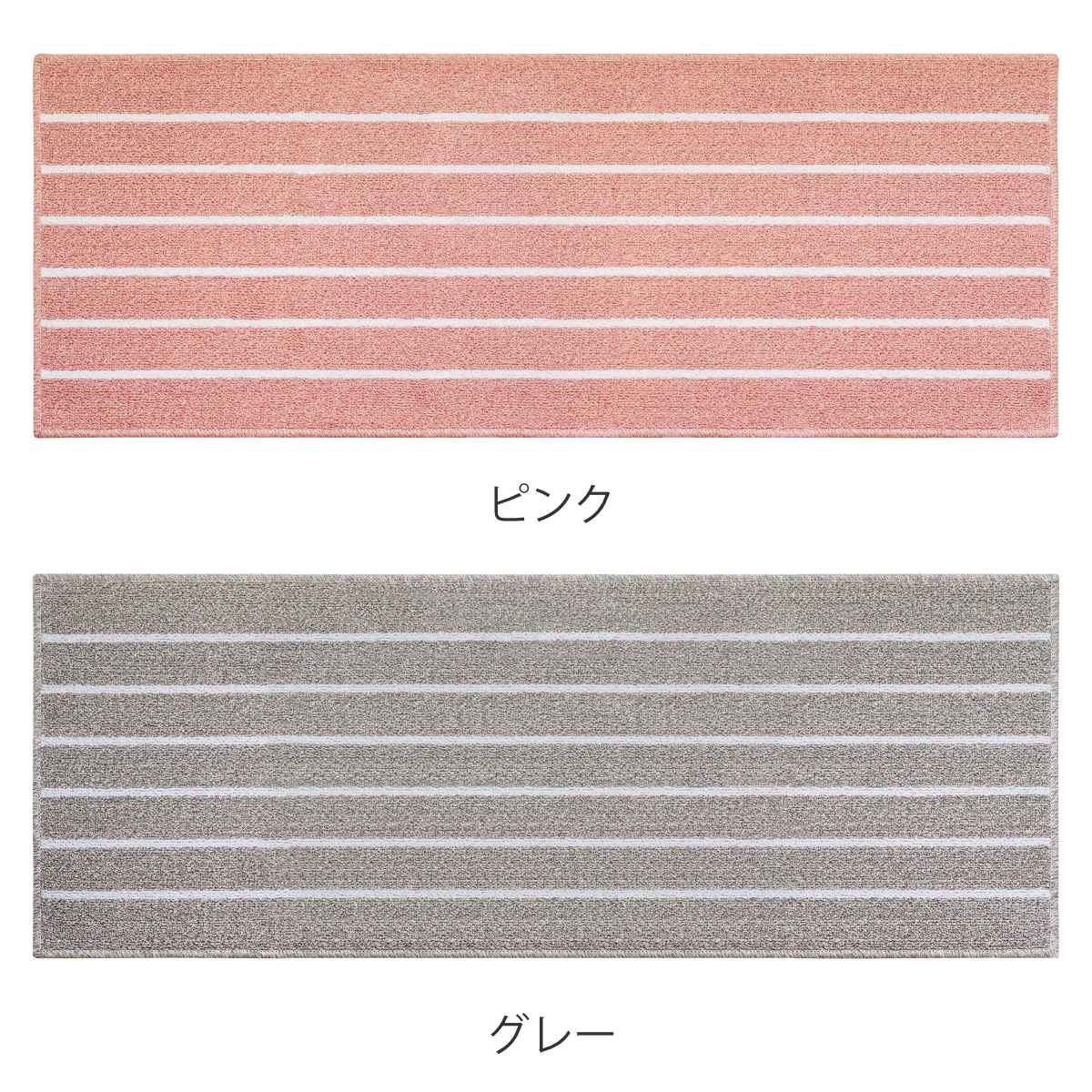 キッチンマット リサイクルコットンインテリアマット ボーダー 45×120cm ( 45cm 120cm 洗える 滑り止め加工 キッチン マット 台所マット キッチン用マット リサイクルコットン キッチンラグ カーペット ラグ インテリアマット )【 ピンク 】