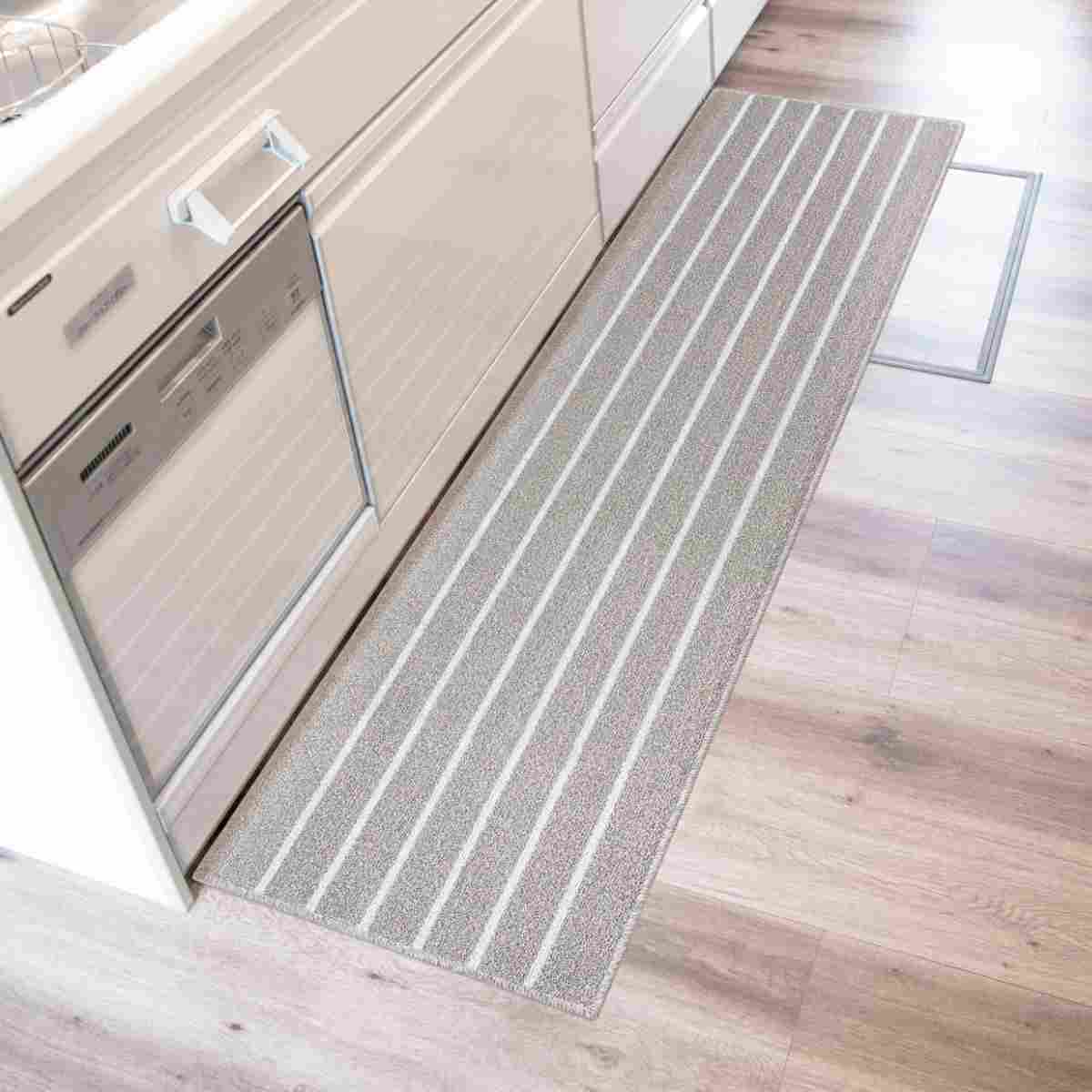 キッチンマット リサイクルコットンインテリアマット ボーダー 45×180cm ( 45cm 180cm 洗える 滑り止め加工 キッチン マット 台所マット キッチン用マット リサイクルコットン キッチンラグ カーペット ラグ インテリアマット )【 グレー 】