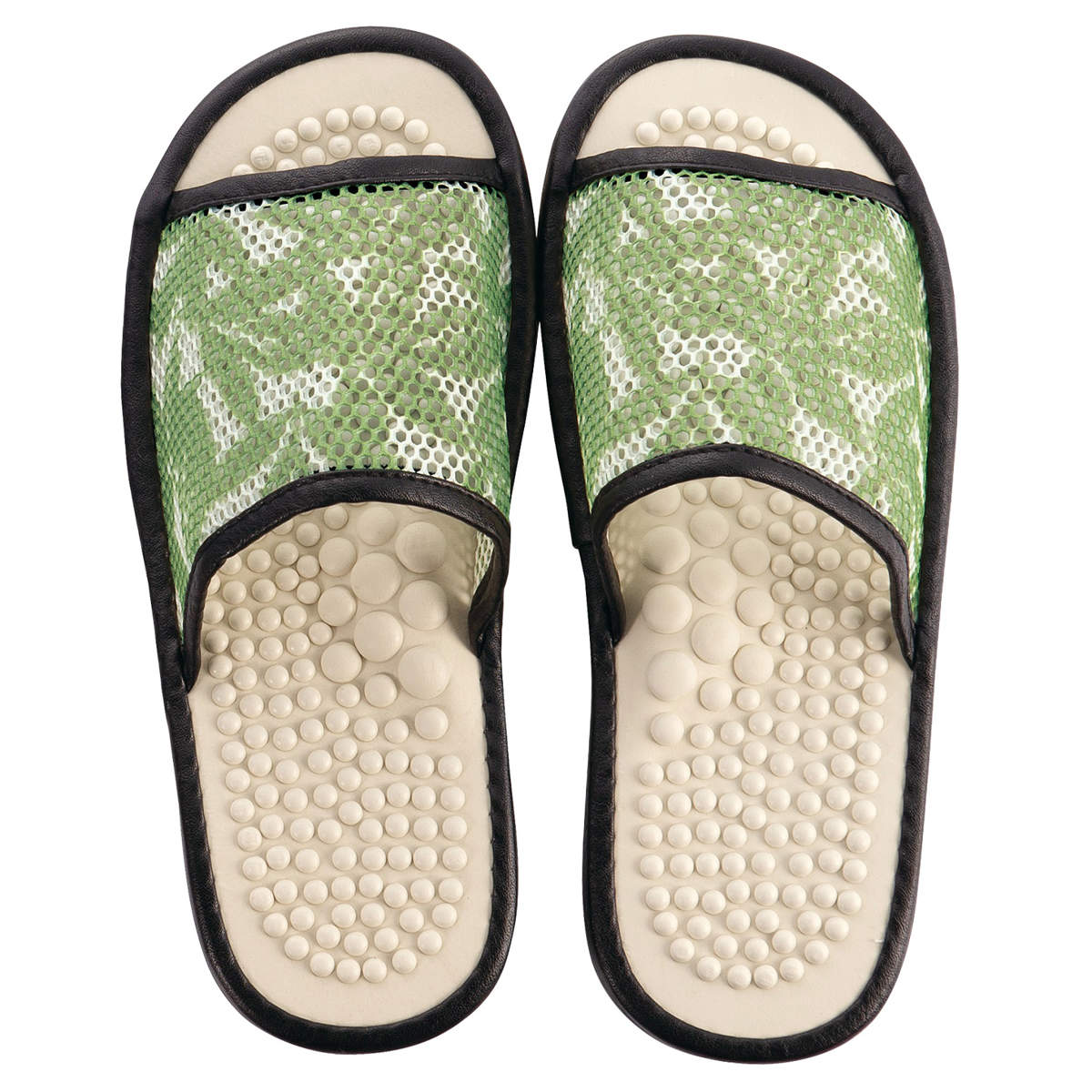 スリッパ ヘルスリーフ Lサイズ 約26.0cm ( ルームシューズ ルームスリッパ 健康スリッパ メンズ 夏用 ツボ押し 足裏 来客用 室内 メッシュ 滑り止め 室内履き 快適 クッション性 前開き 健康サンダル 足つぼ 素足 健康 )【 グリーン 】
