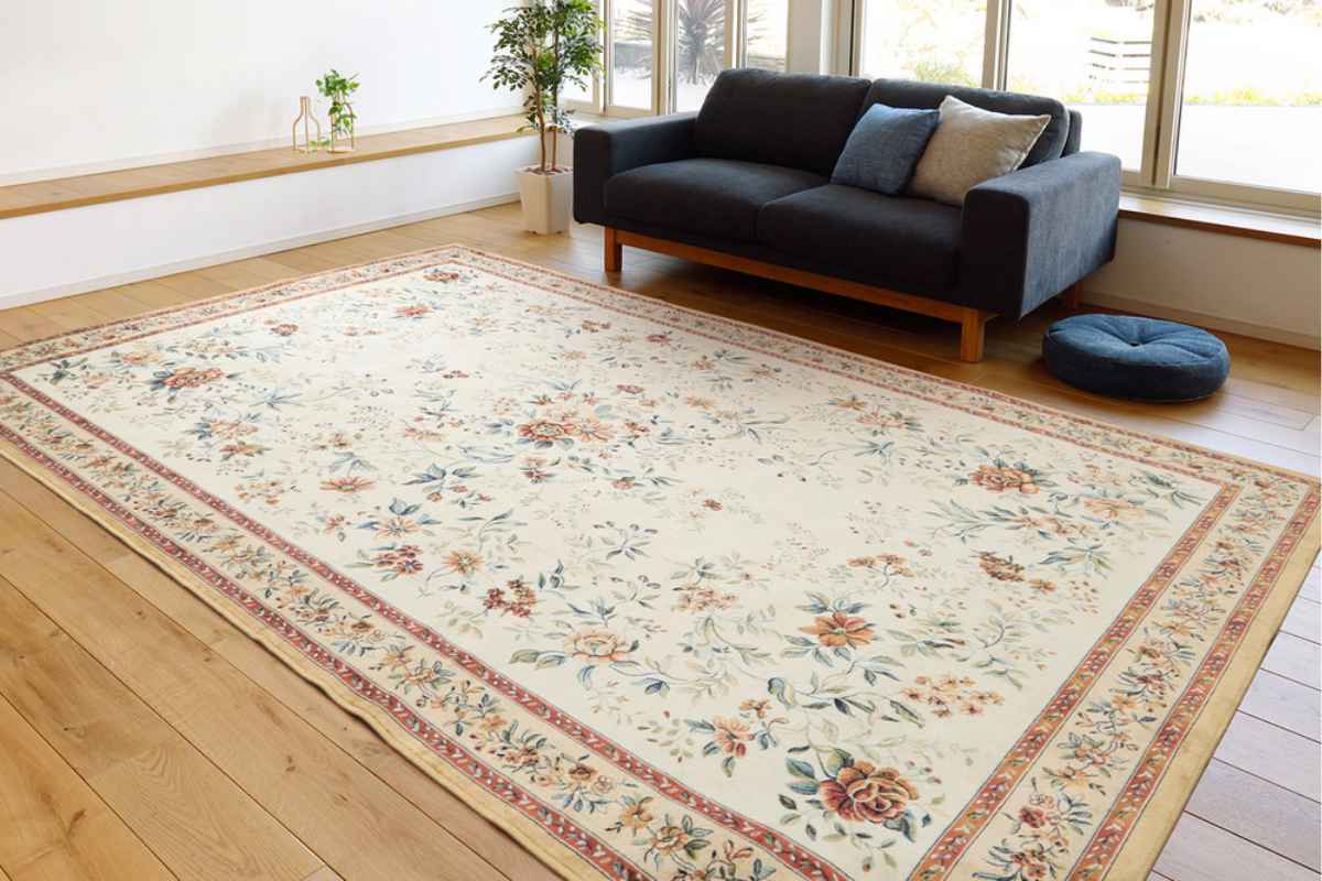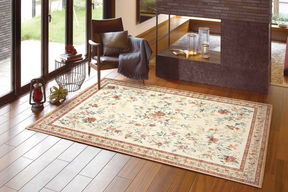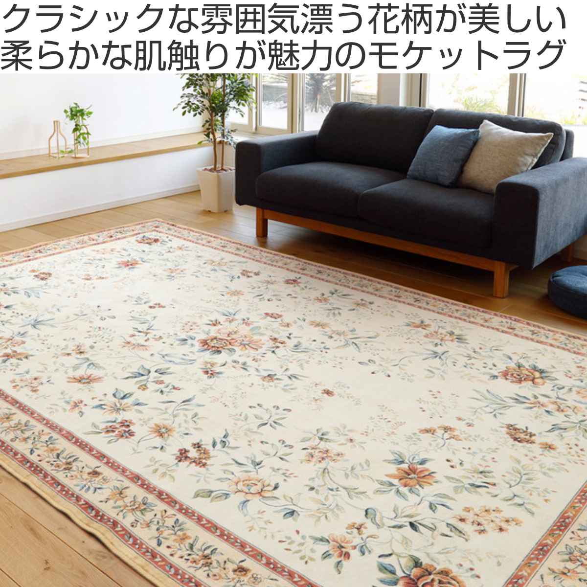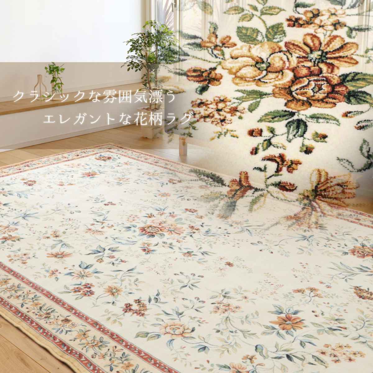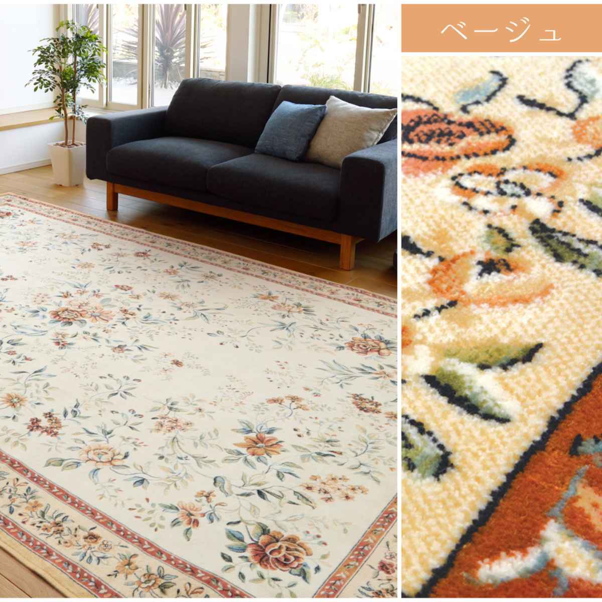 ラグ ベルギー製モケットラグ ロイヤルパレス アムール 230×330cm ( カーペット 絨毯 マット ラグマット 長方形 5畳 薄手 アクセントラグ オールシーズン コンパクト 薄い 畳める 床暖 ホットカーペット 対応 短毛 花柄 ) 【ベージュ】