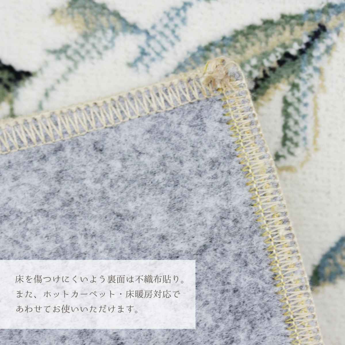 床が傷つきにくいよう裏面には不織布が貼られています。また、ホットカーペット、床暖房に対応しているので、寒い冬でも温かく過ごせます。