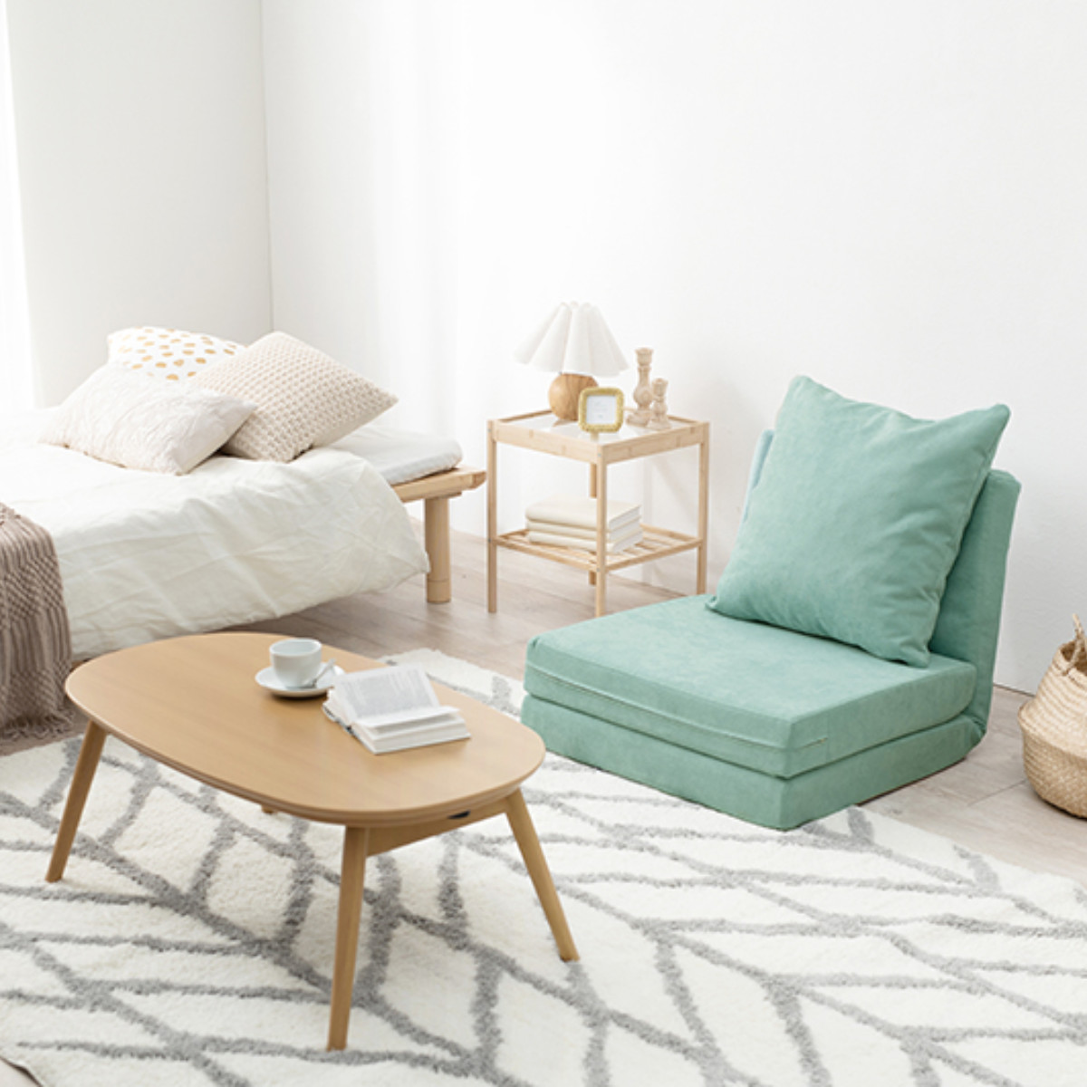 省スペースで簡単に広げてうたた寝ができ、折りたためばお部屋への圧迫感が最小限になります。空間をひろびろ使えるので、ひとり暮らしやワンルームに最適です。