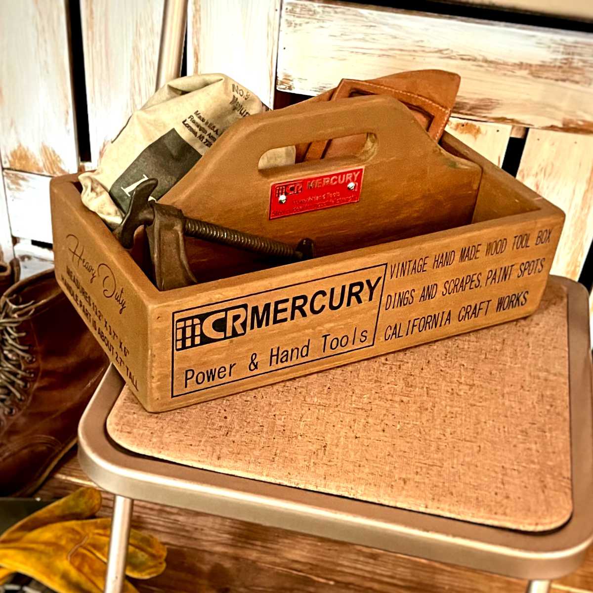 ●持ち運びに便利なハンドルがついた、木製のツールボックスです。