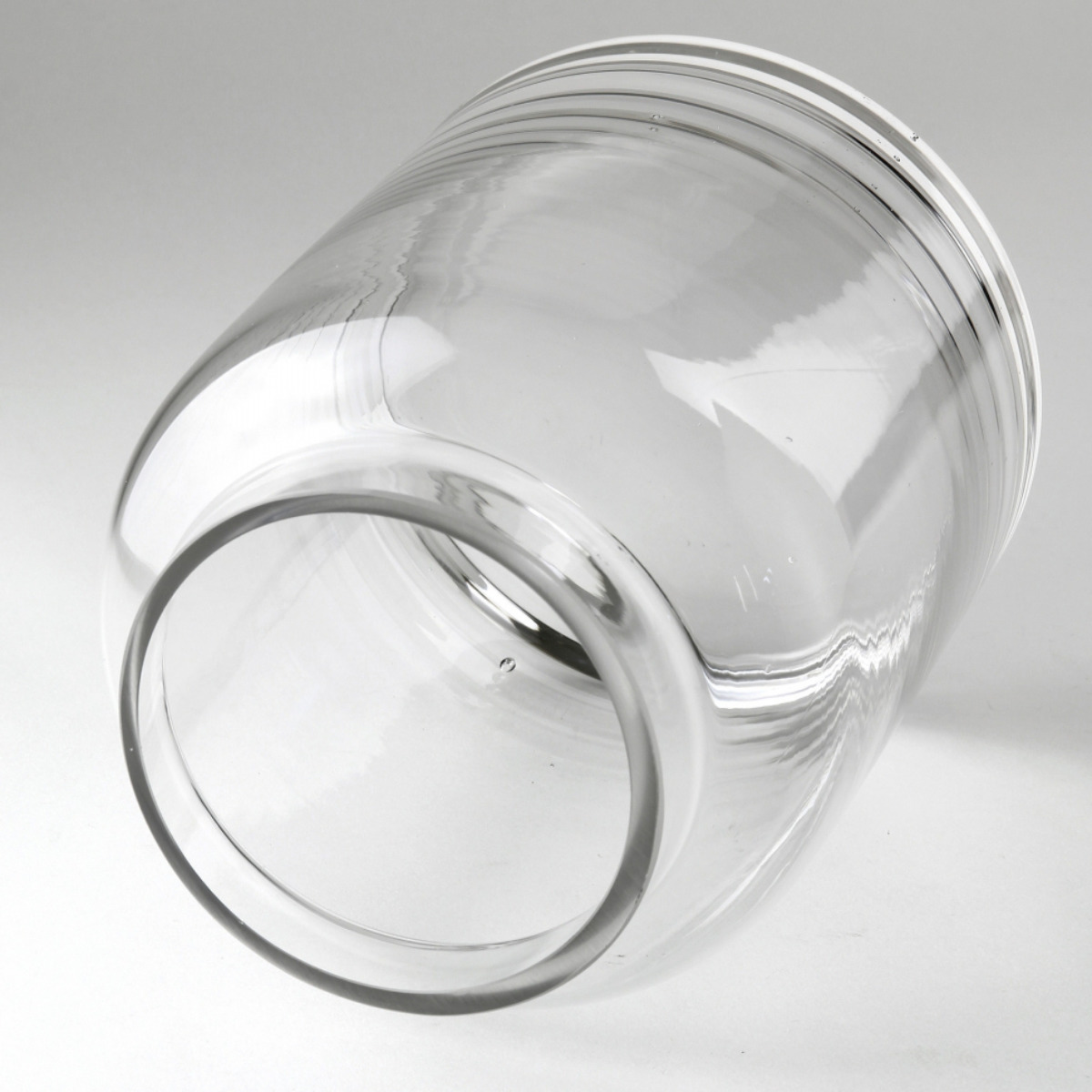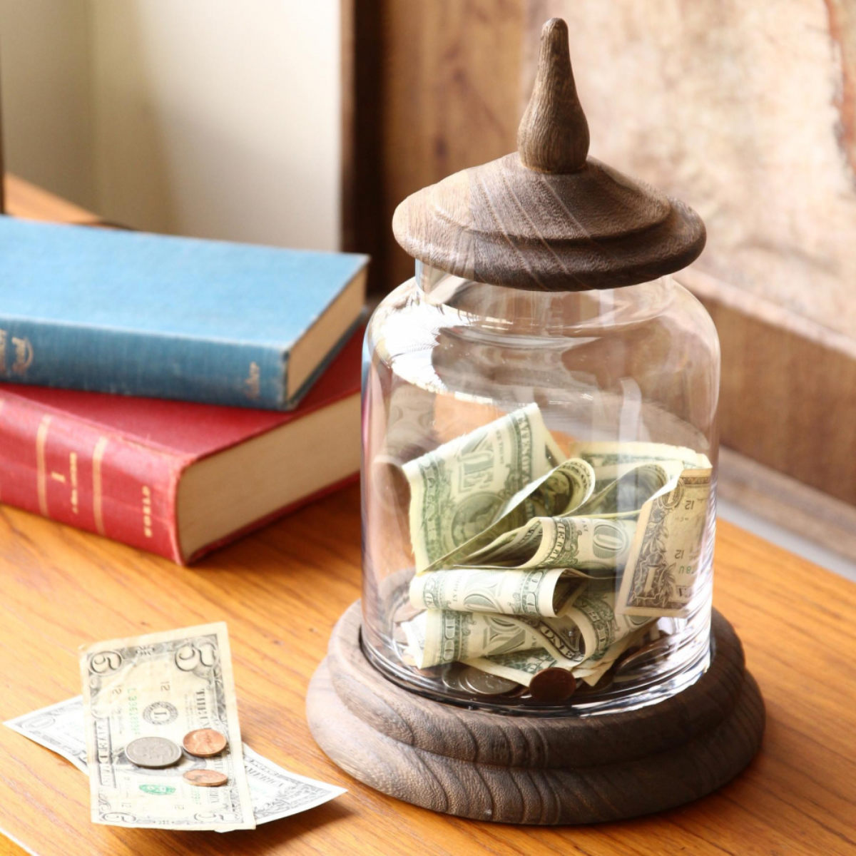 口径が広く奥まで手が入るので、収納物の出し入れがしやすいです。また木製の台座と蓋は外せるので、ガラス製の本体だけ洗うことができ、お手入れもしやすいです。