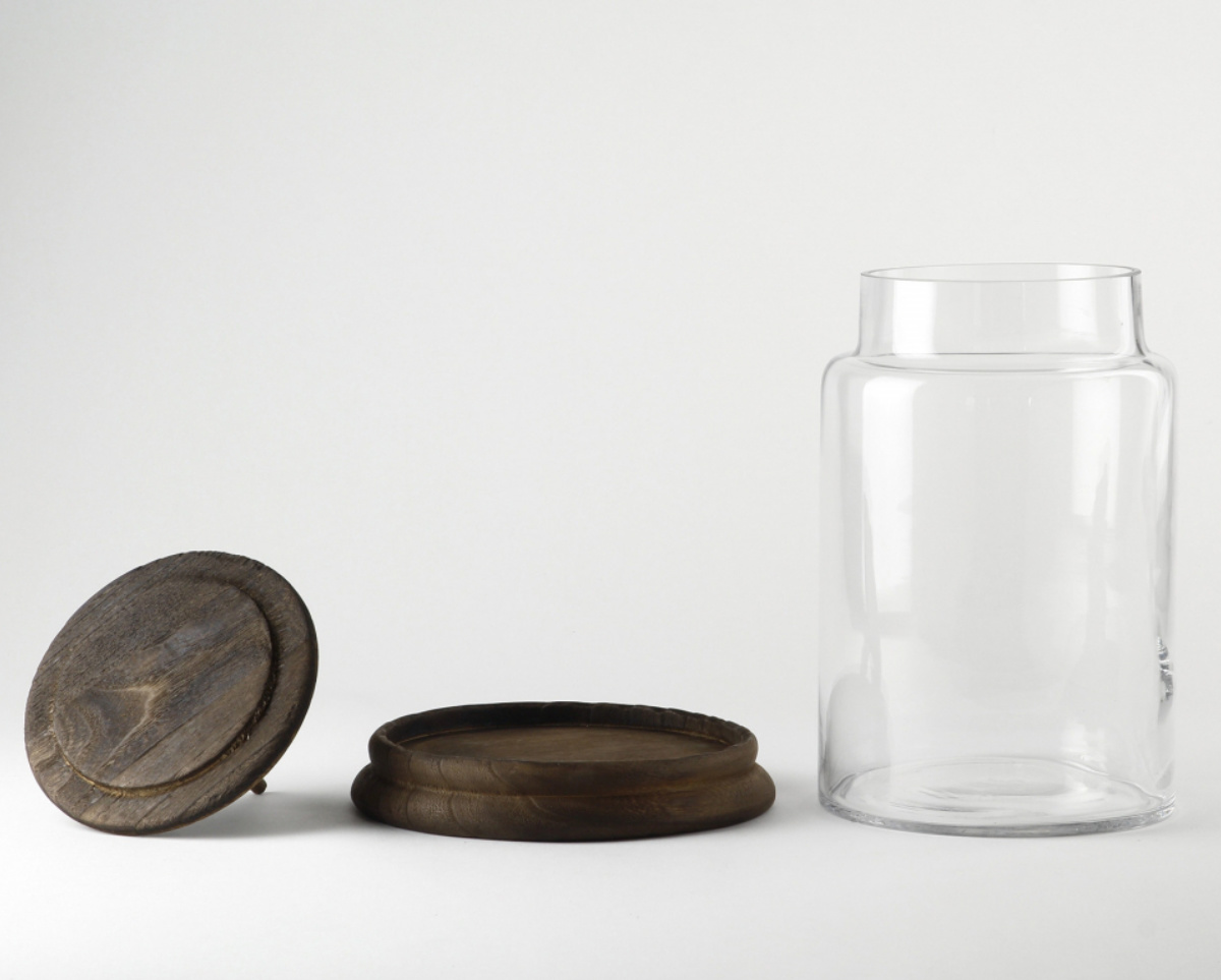 ●ガラスと天然木の組み合わせがおしゃれな、大き目サイズのガラスジャーです。
