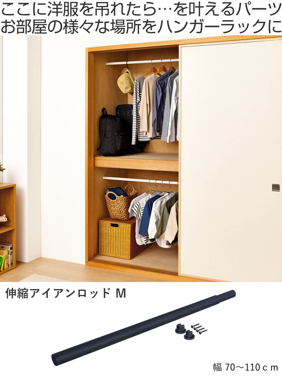 伸縮ロッド M LABRICO ラブリコ アイアン 幅70~110cm ( パーツ ポール 伸縮 直径3cm DIY ハンガーラック ポールハンガー 収納 衣類 壁面収納 壁 ねじ固定式 押し入れ 押入れ 見せる収納 玄関 おしゃれ 賃貸 簡単取り付け ) 【ブラック】