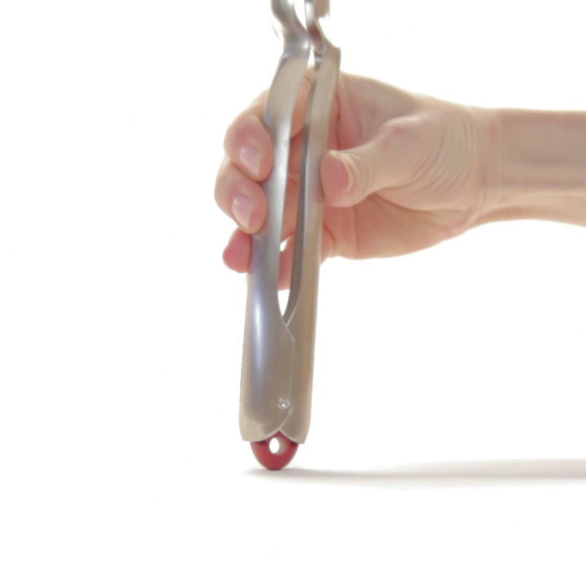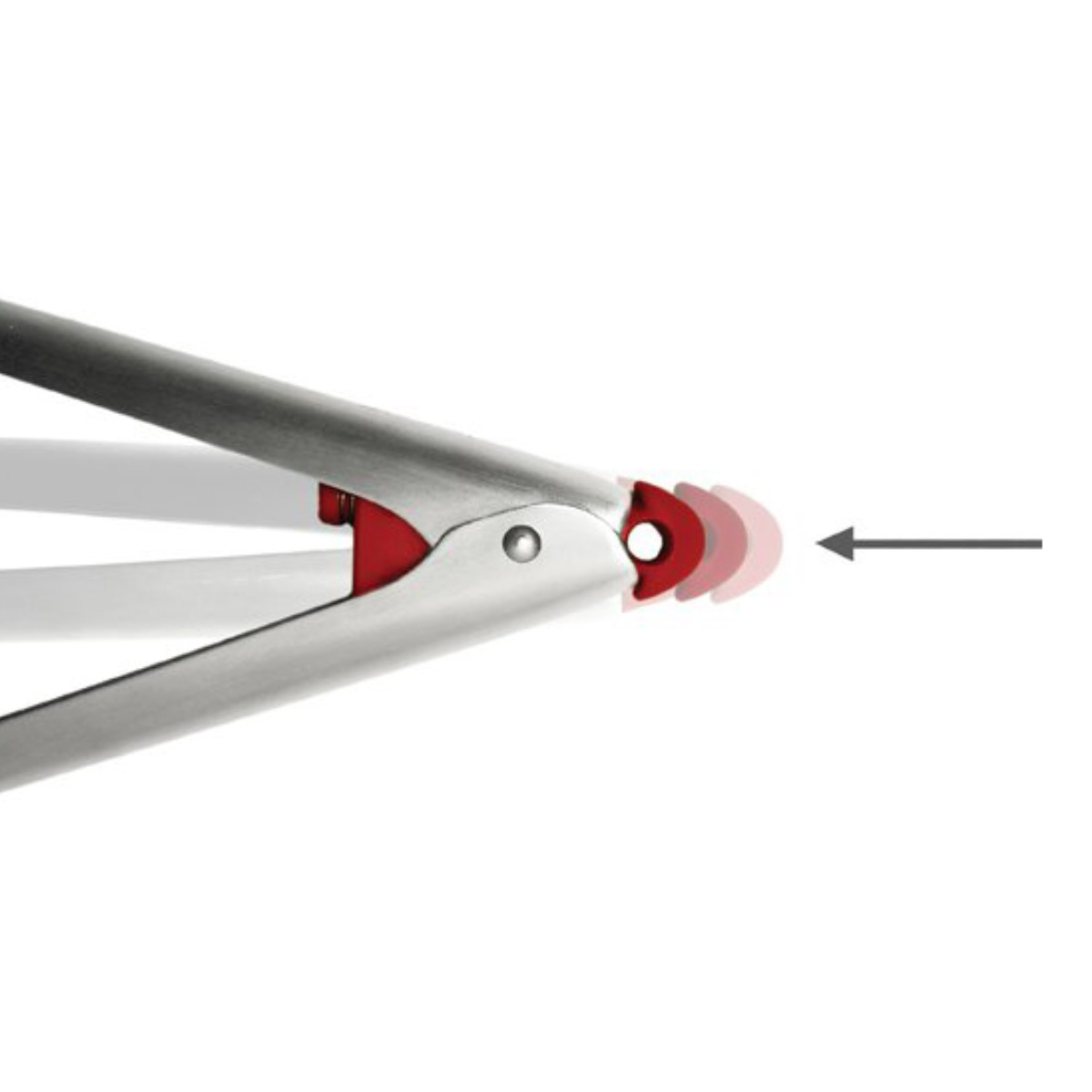 調理中、片手でも簡単にトングの開閉ができるクリック開閉式です。持ち手の端部分をクリックすると、一瞬でトングが開かないようロックできます。