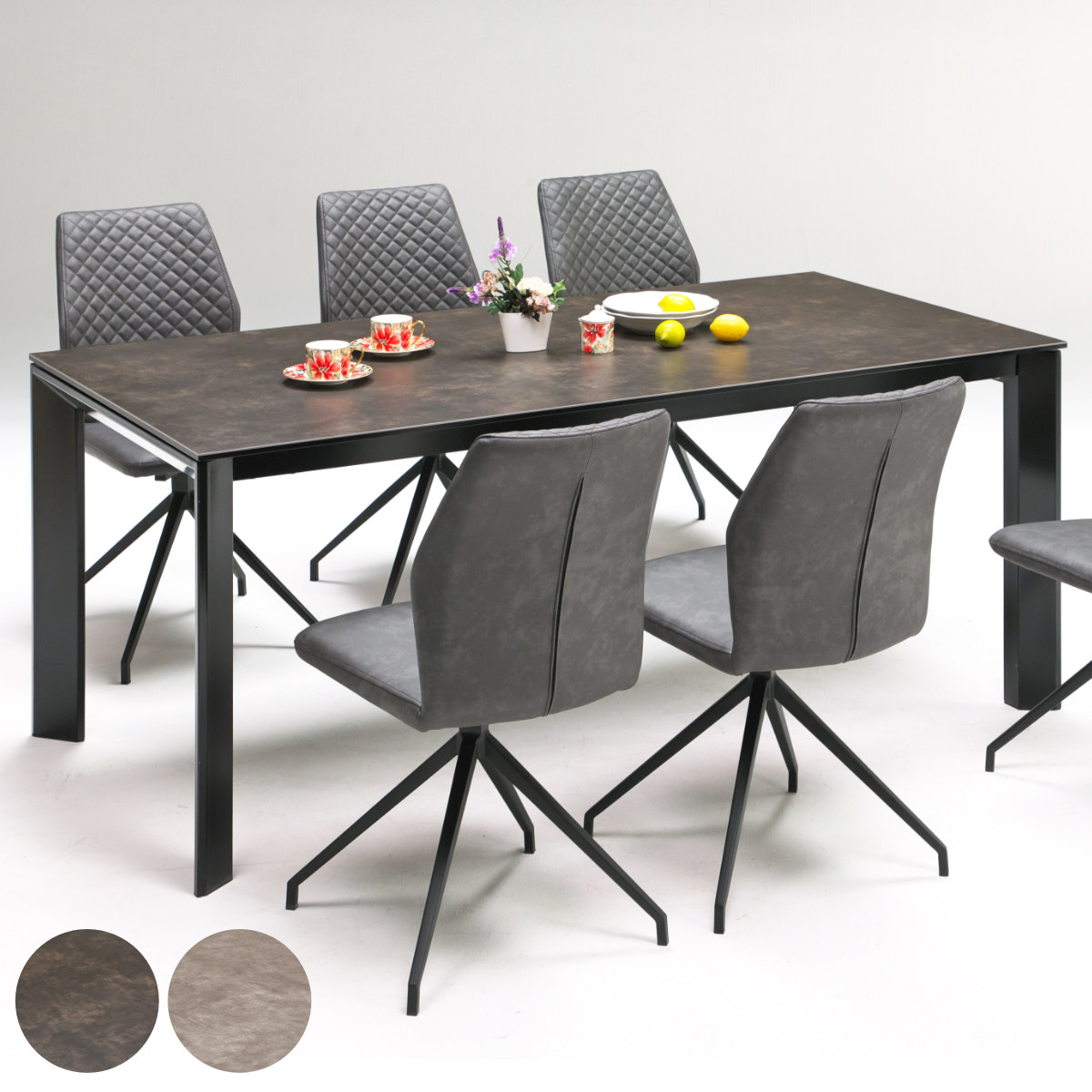 セラミックダイニングテーブルの他に、同じシリーズでダイニングチェアも展開されています。ファブリック地とPUレザーの2種類あり、お部屋のテイストやカラーに合わせてお選びいただけます。同シリーズでダイニングセットを揃えることで、統一感のある空間を演出できます。スタイリッシュモダンなダイニングルームで、毎日の食事をお楽しみください。