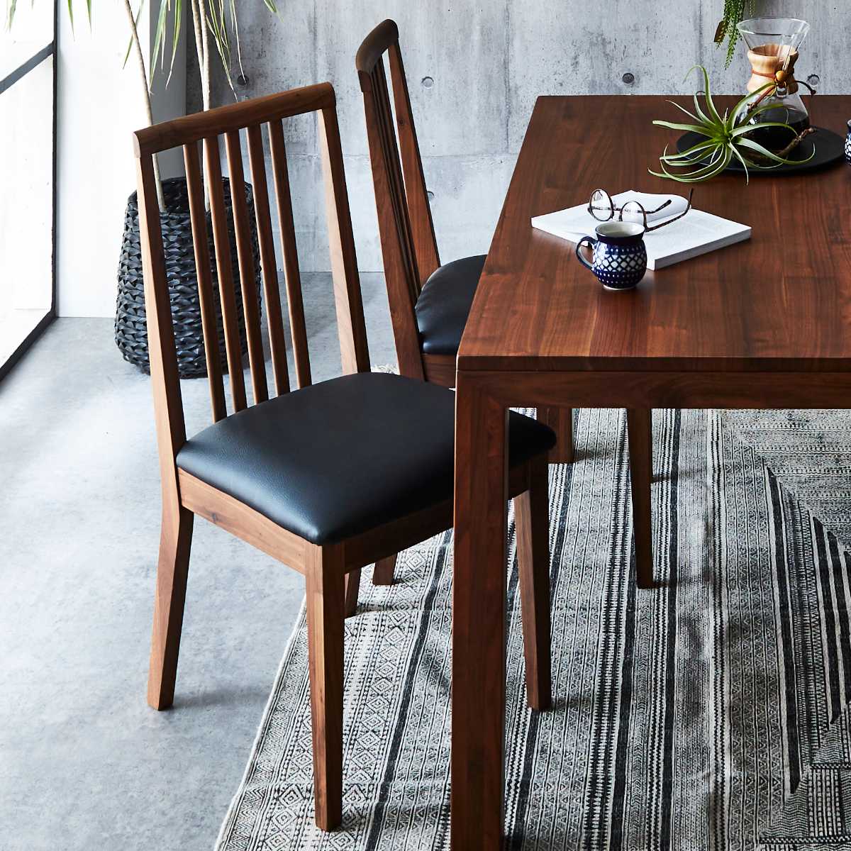 天然木ウォールナットの無垢材を贅沢に使用した、モダンで高級感のあるダイニングチェアです。フレームには艶感を抑えた仕上げを施すことで、木本来が持つ色味や温かさをお楽しみいただけます。