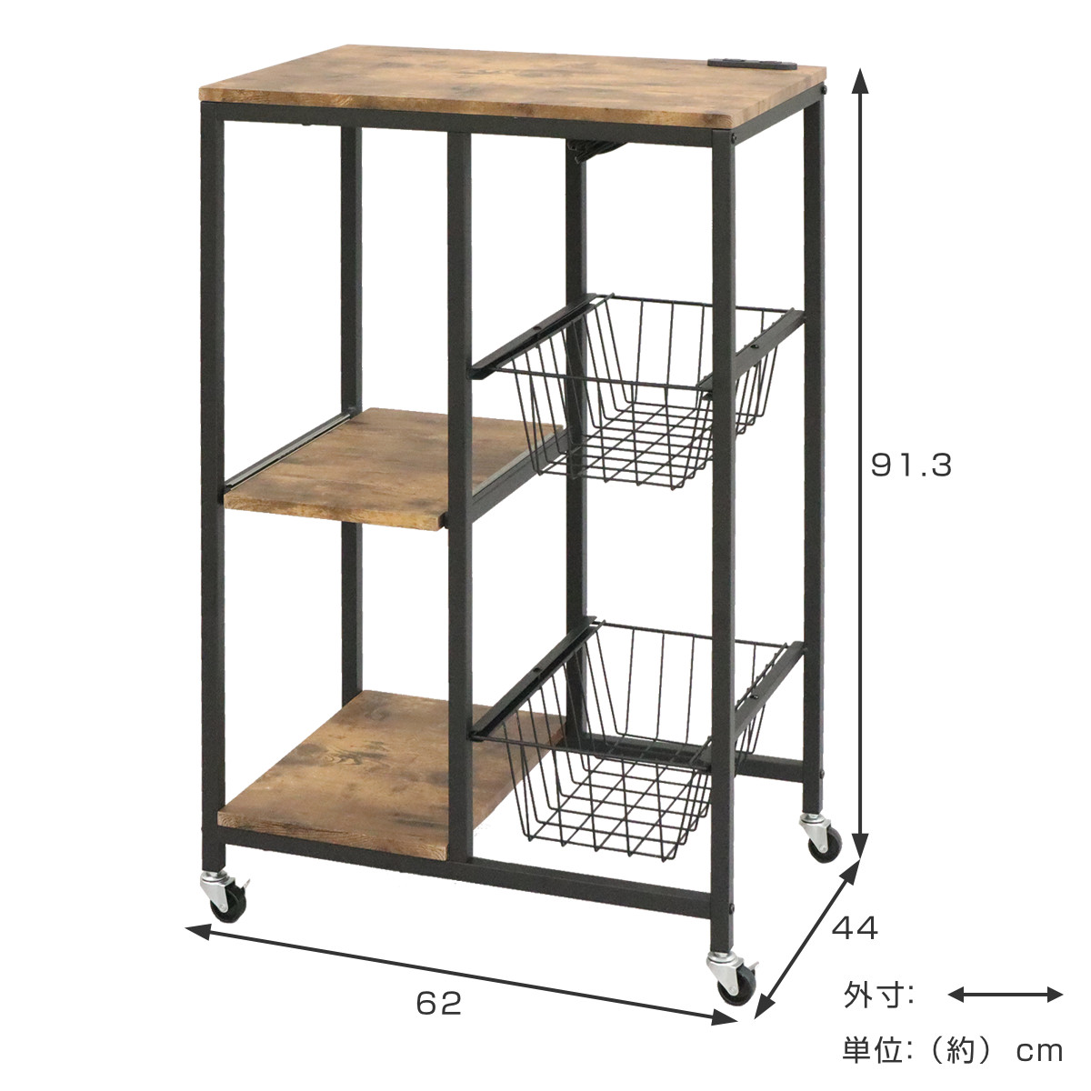 | 耐荷重 | 全体(静止時):50kg バスケット:3kg スライド棚:4kg 下段:20kg |