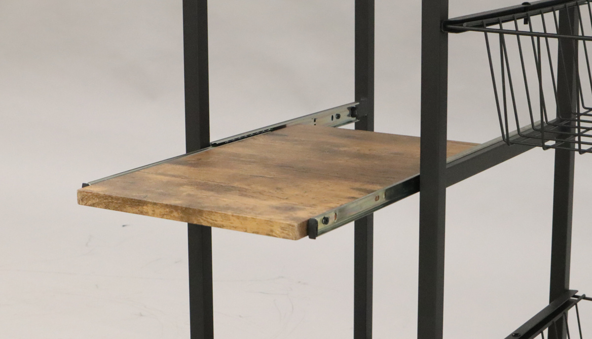 出し入れしやすいスライド式のバスケットには、食品やキッチン用品を収納することができます。通気性に優れているので、根菜の保管にもおすすめです。また、バスケットはストッパー付きで、引き出しすぎてしまっても抜け落ちないので安心です。
