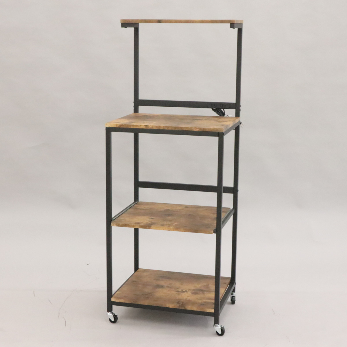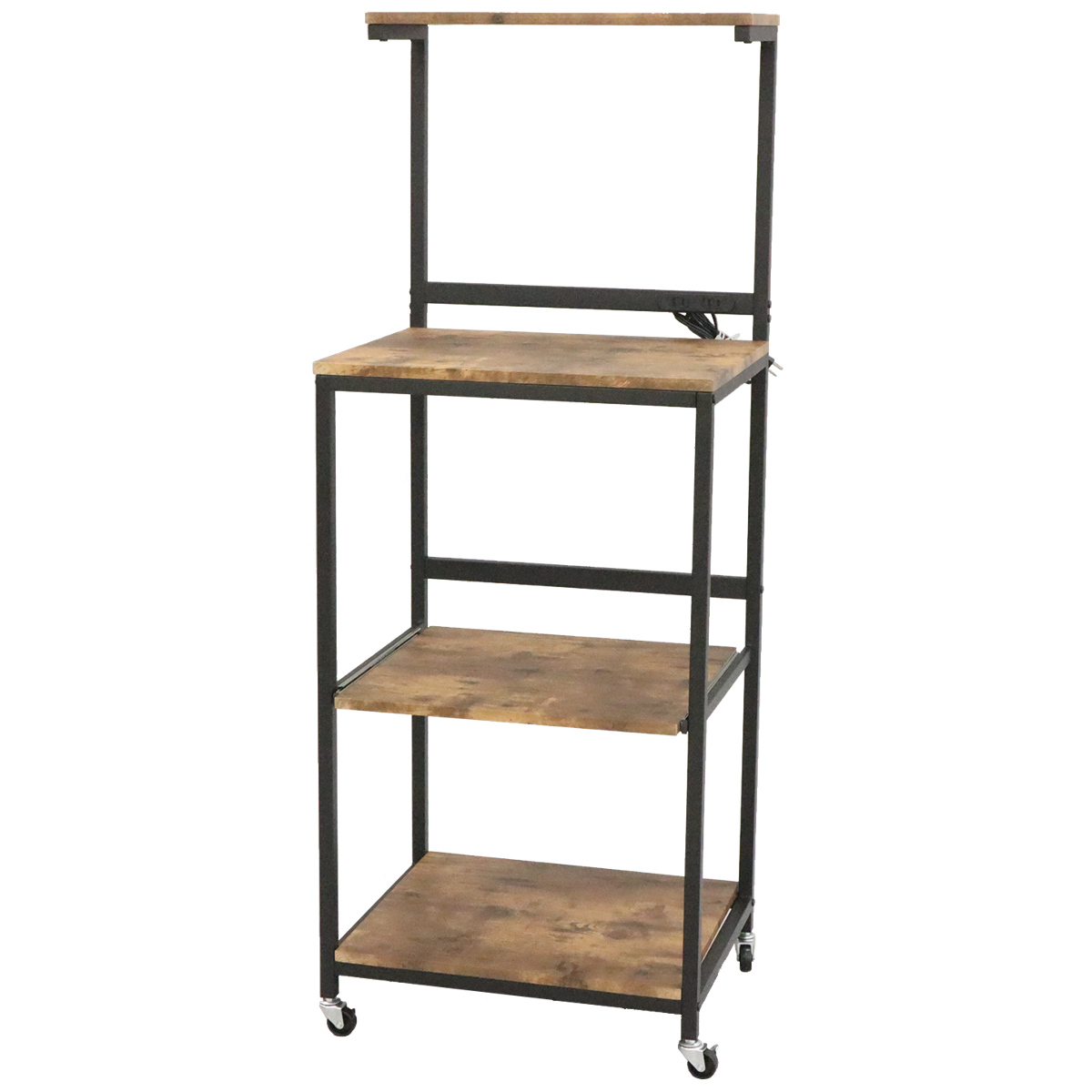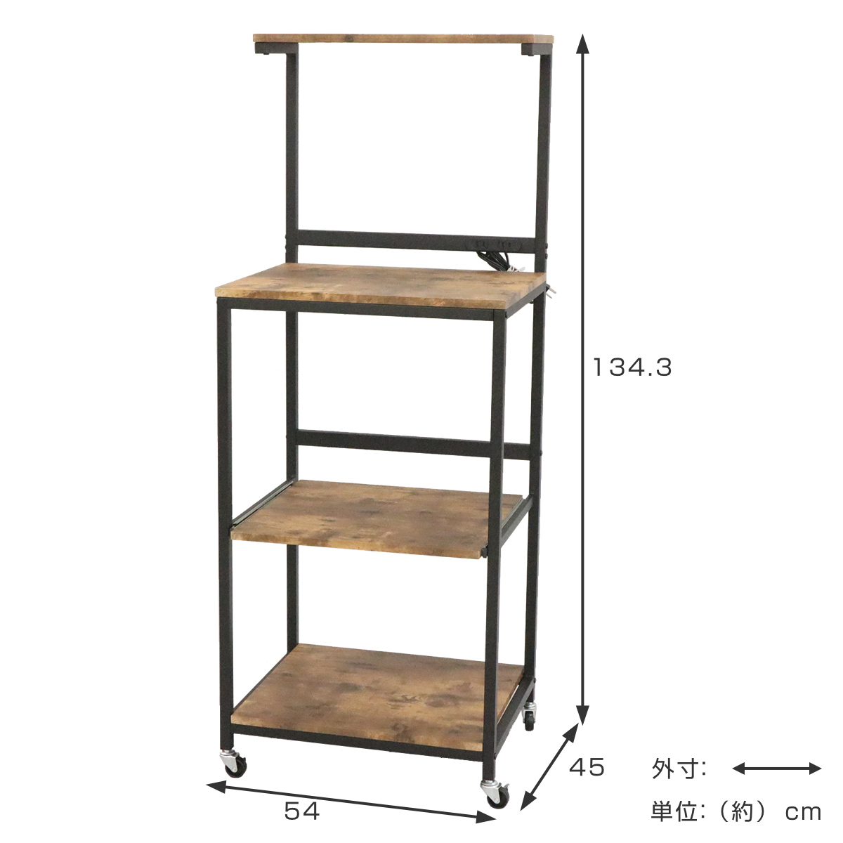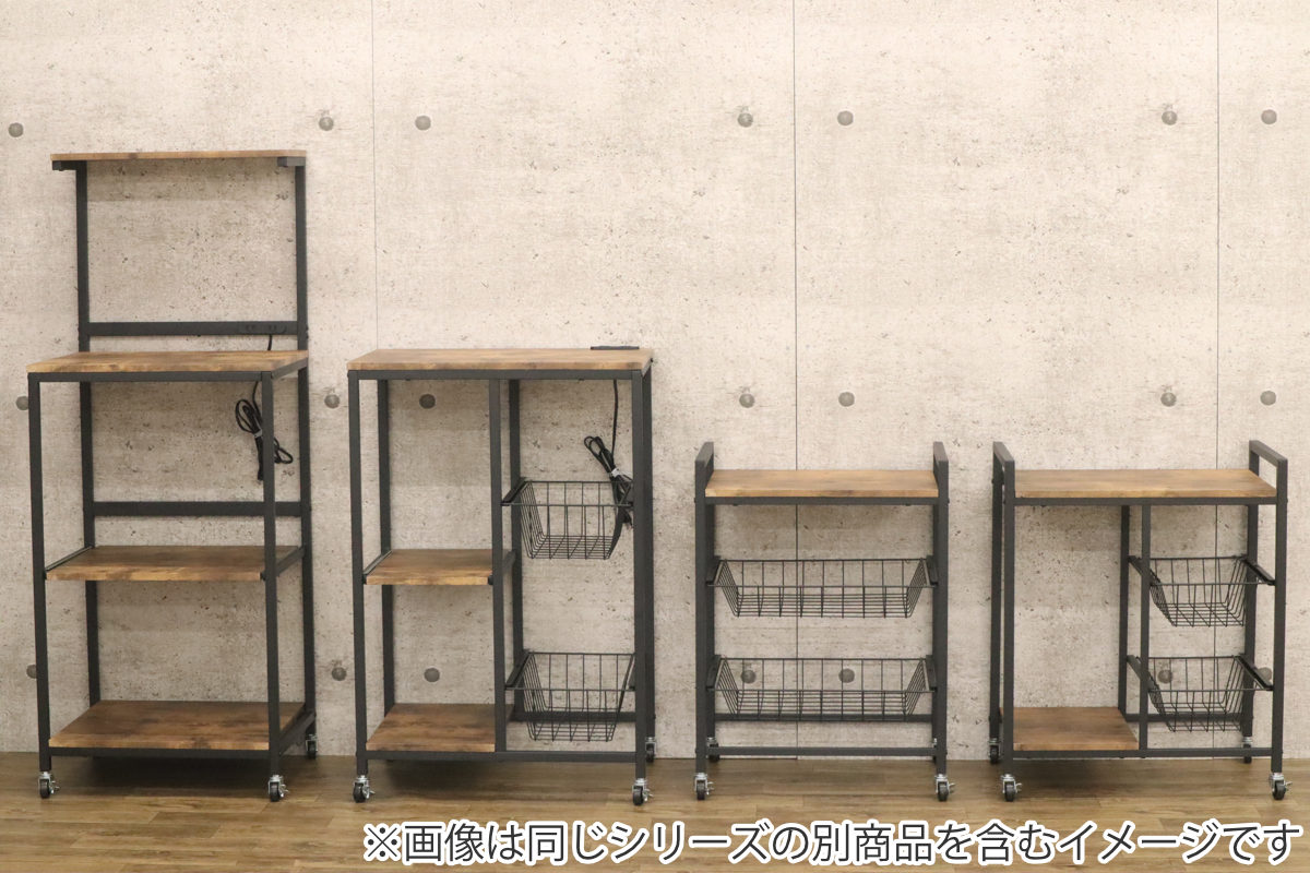 レンジラック ハイタイプ ヴィンテージ調 スライド棚付 幅54cm ( キッチン収納 収納 収納ラック キャスター レンジ台 家電収納 台所収納 収納ワゴン ブラウン ブラック おしゃれ )