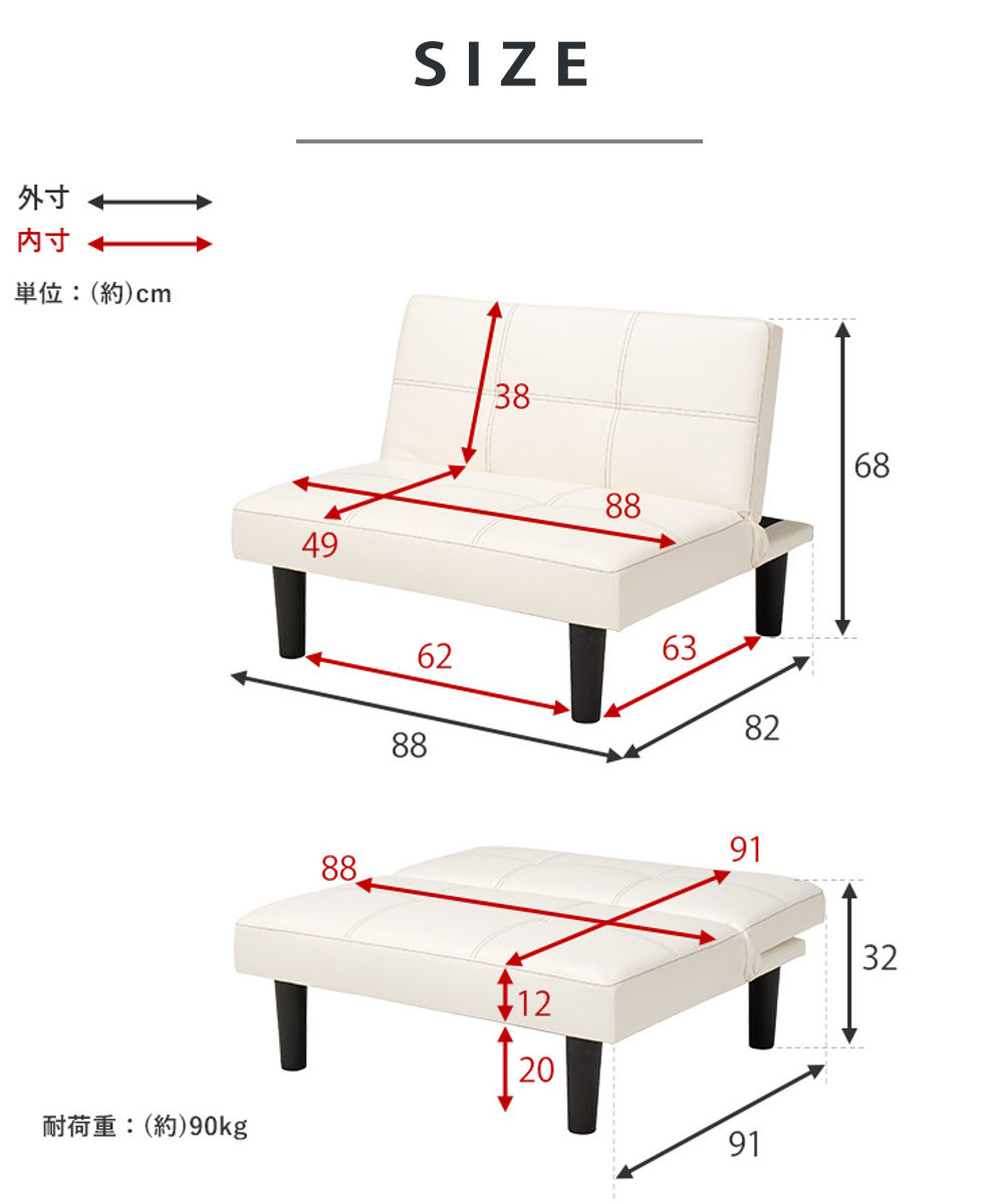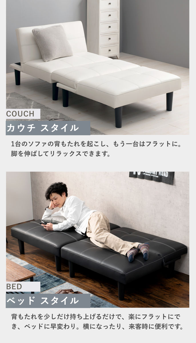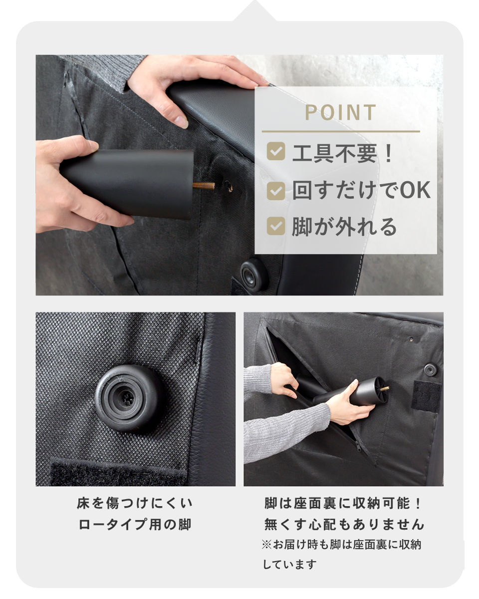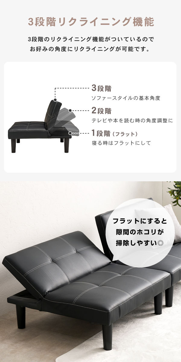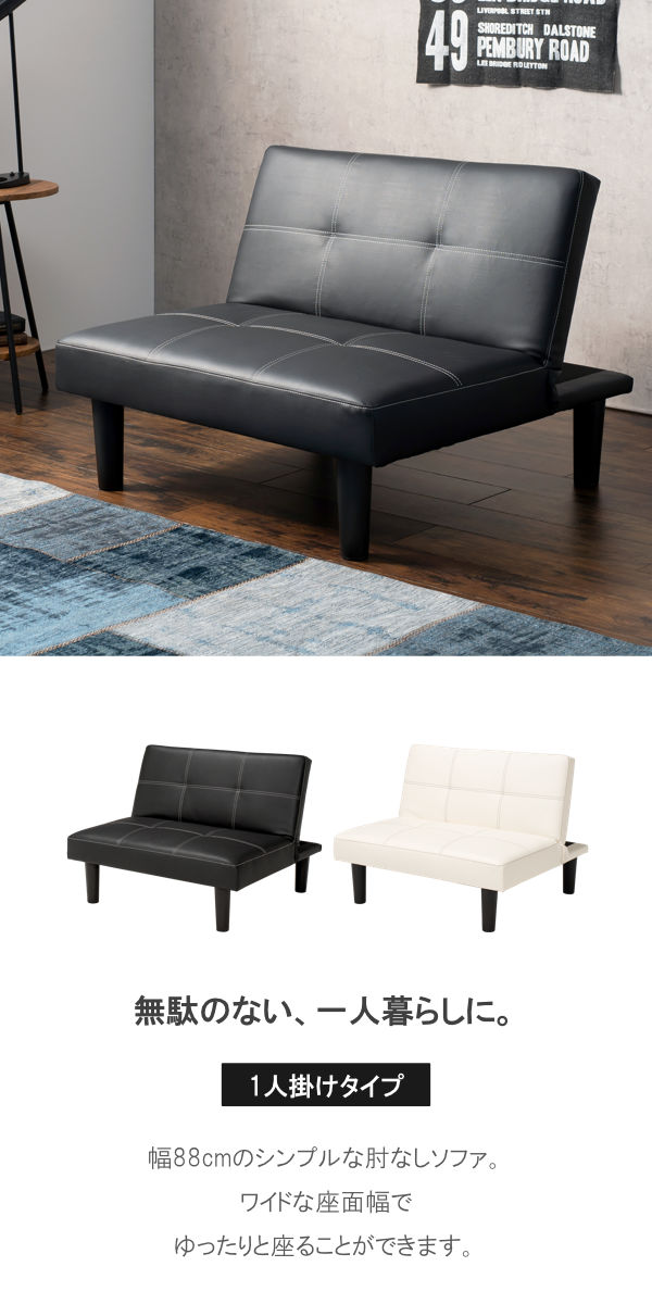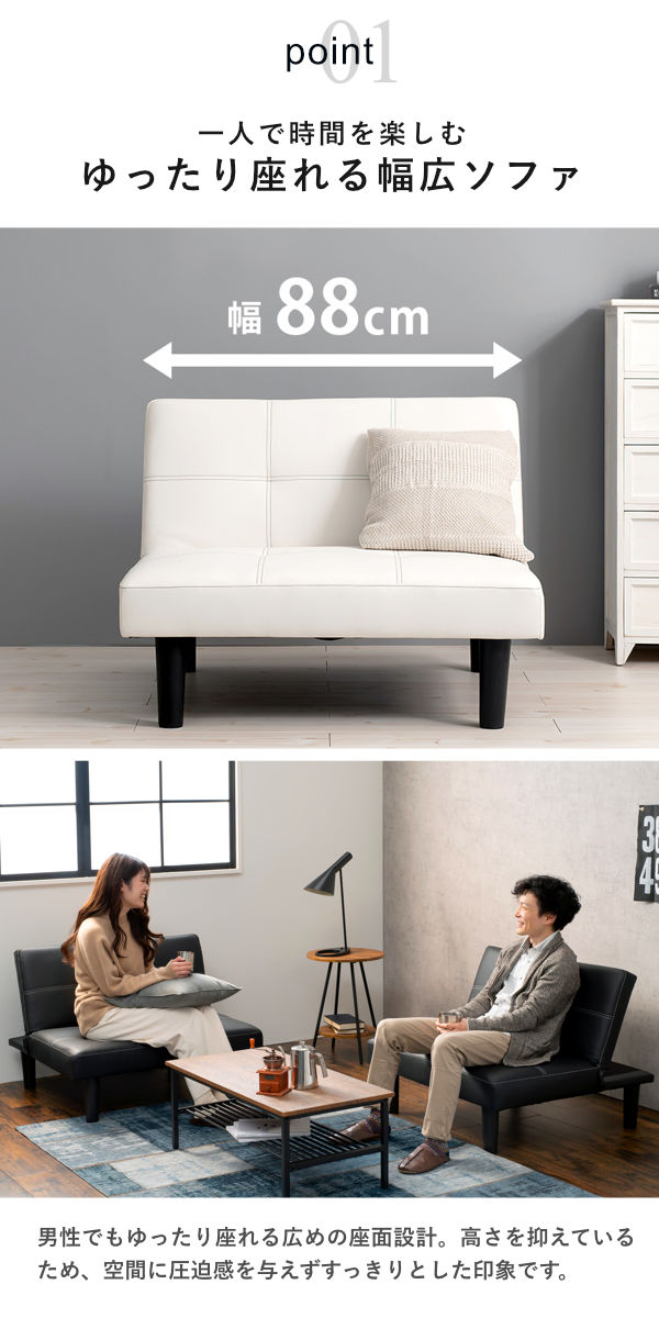 ソファ 幅88cm 1人掛け 幅広 3段階リクライニング レザー調 お掃除ロボット対応 ( ソファー ローソファ チェア 座面 ワイド 広い 肘なし 脚 取り外し フロアソファ リクライニング コンパクト リビングソファ ) 【ホワイト】